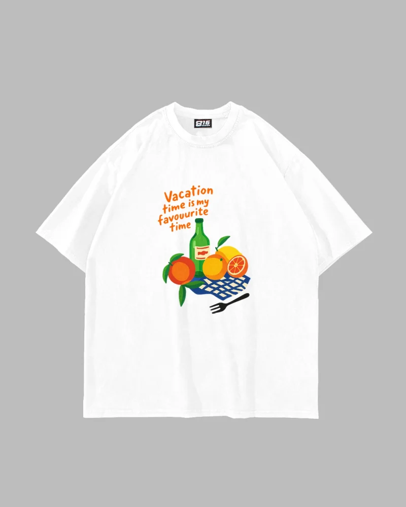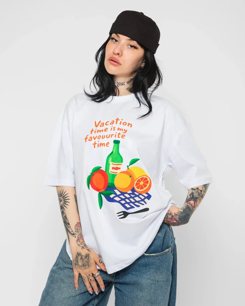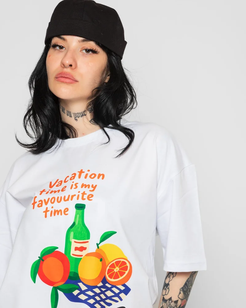 Fruits Baskılı Oversize Unisex Beyaz Tshirt