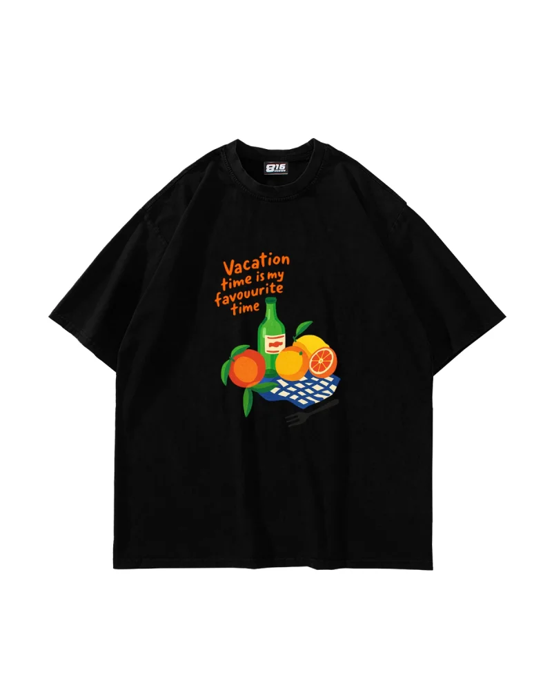 Fruits Baskılı Oversize Unisex Siyah Tshirt