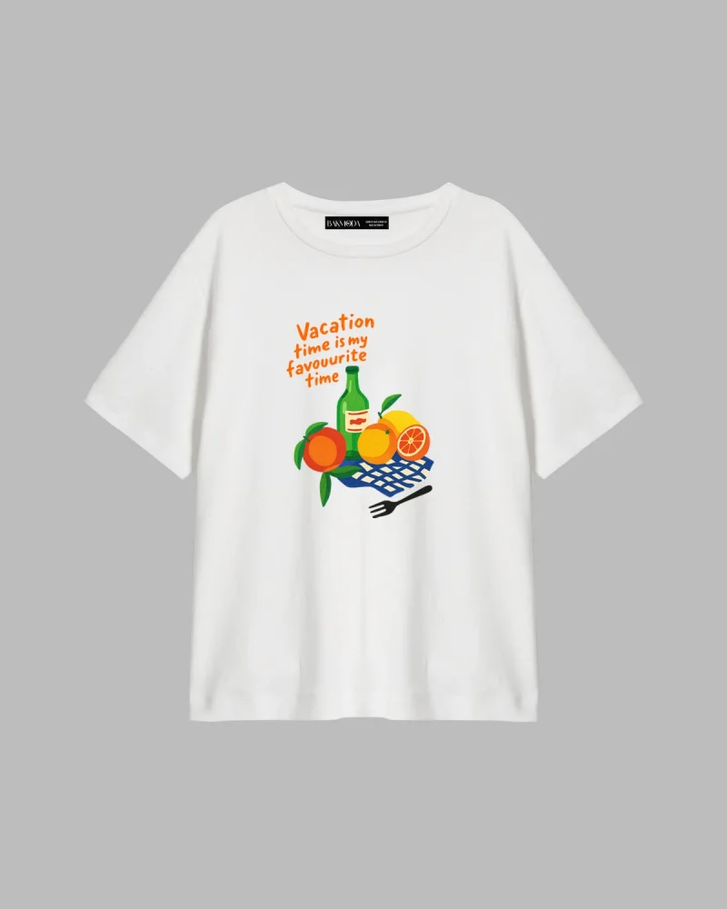 Fruits Baskılı Relaxed Fit Beyaz Kadın Tshirt