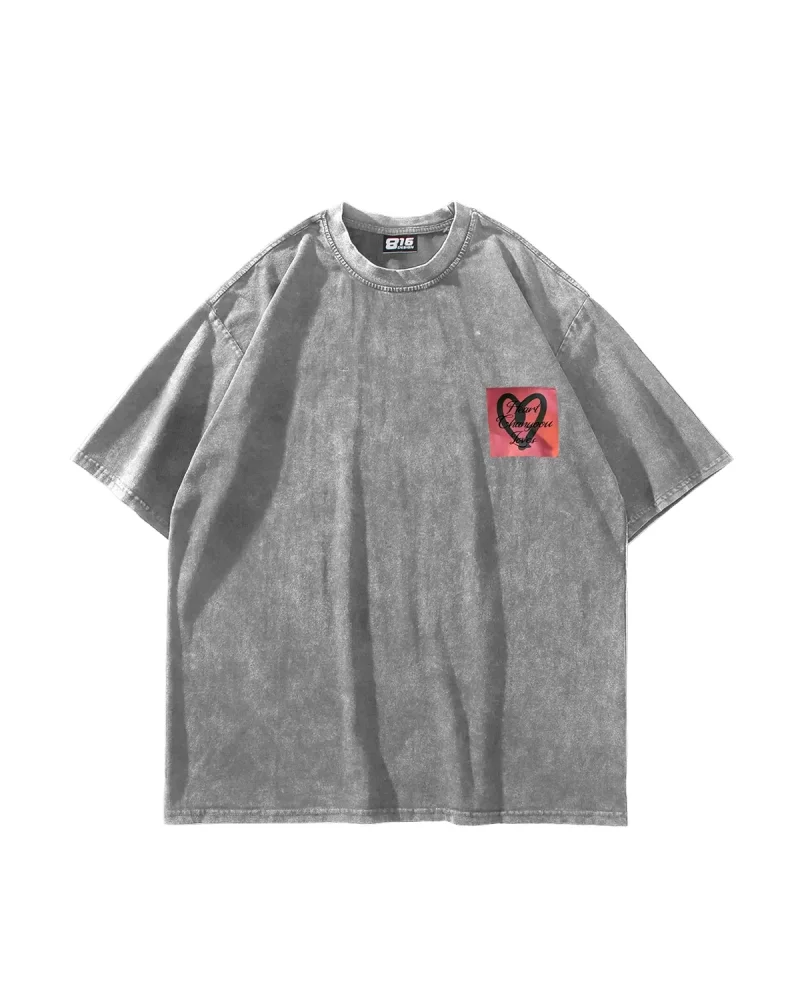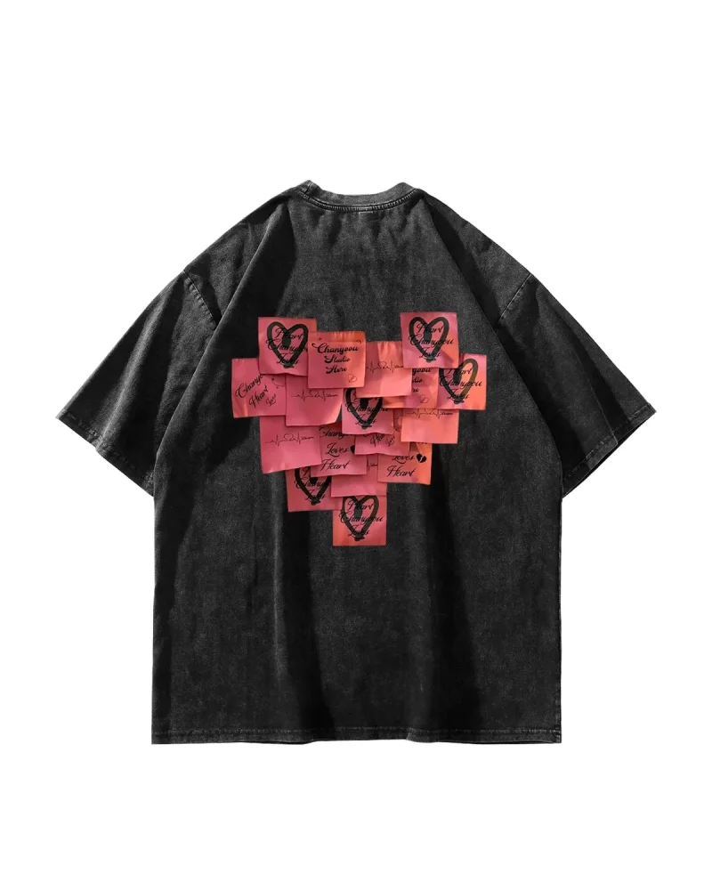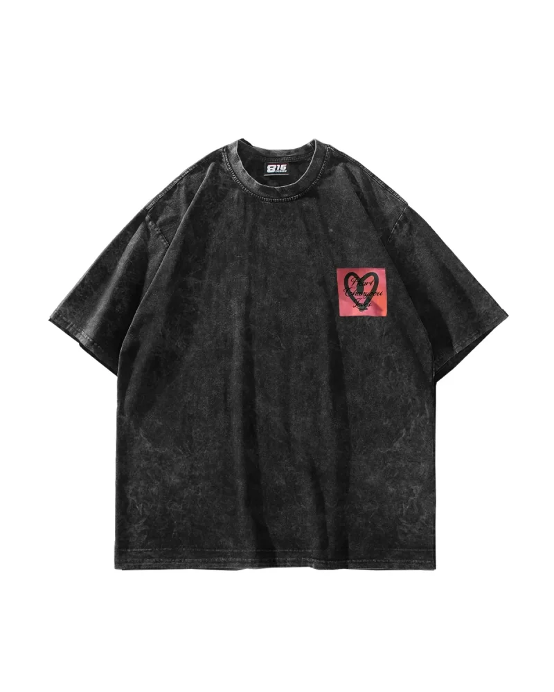Love Baskılı Oversize Unisex Yıkamalı Siyah Tshirt