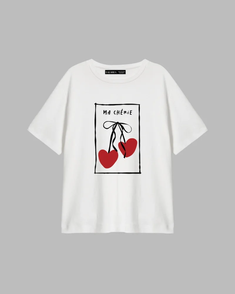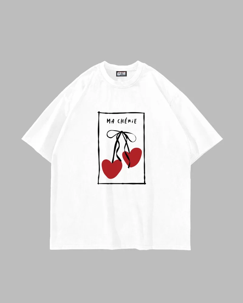 Ma Cherie Baskılı Oversize Unisex Beyaz Tshirt
