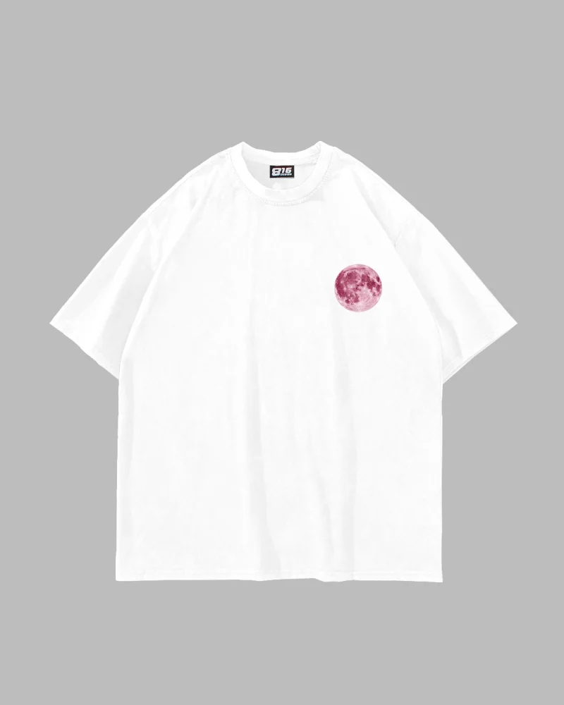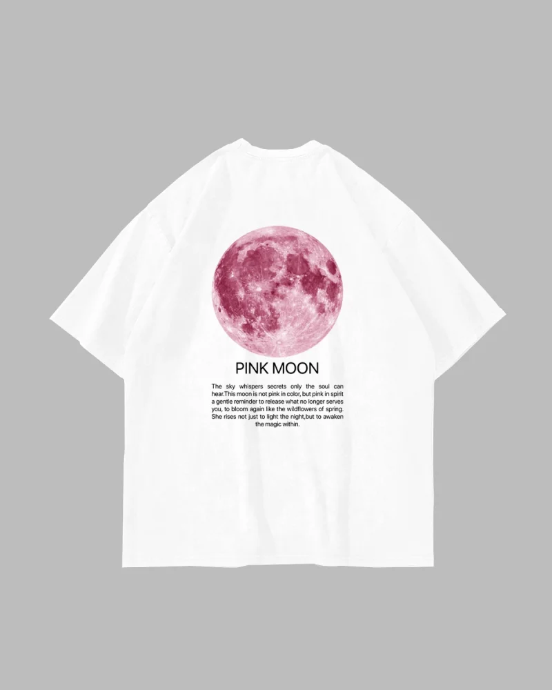 Pink Moon Baskılı Oversize Unisex Beyaz Tshirt