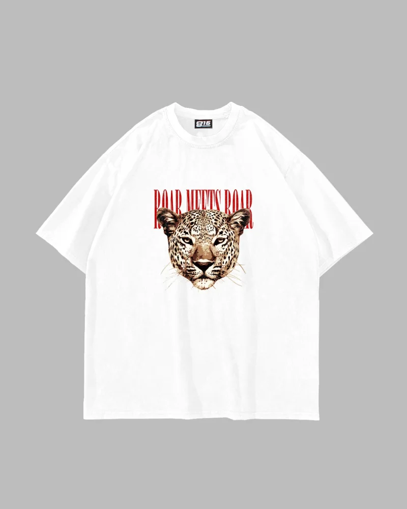 Roar Meets Baskılı Oversize Unisex Beyaz Tshirt