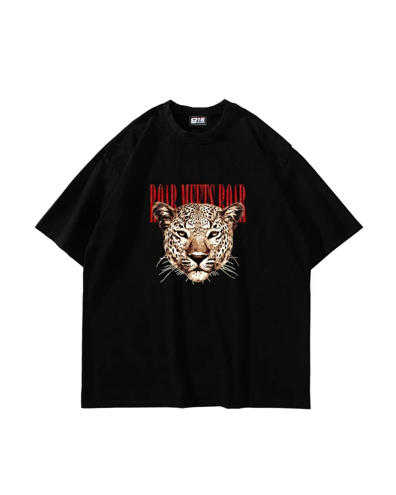 Roar Meets Baskılı Oversize Unisex Siyah Tshirt