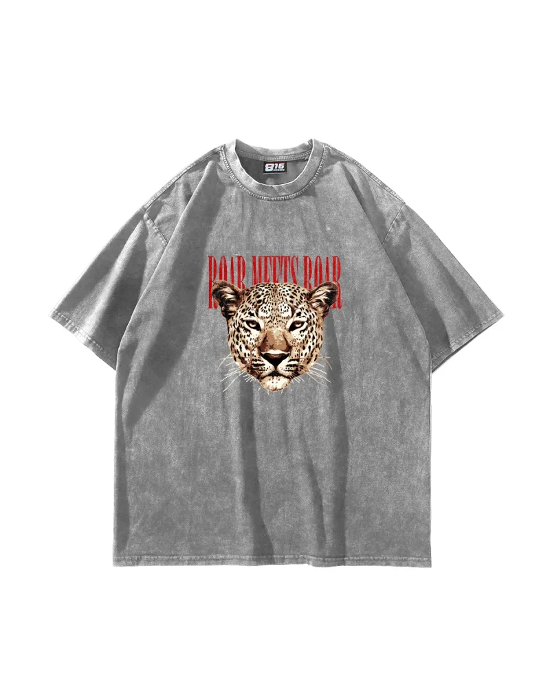 Roar Meets Baskılı Oversize Unisex Yıkamalı Beyaz Tshirt