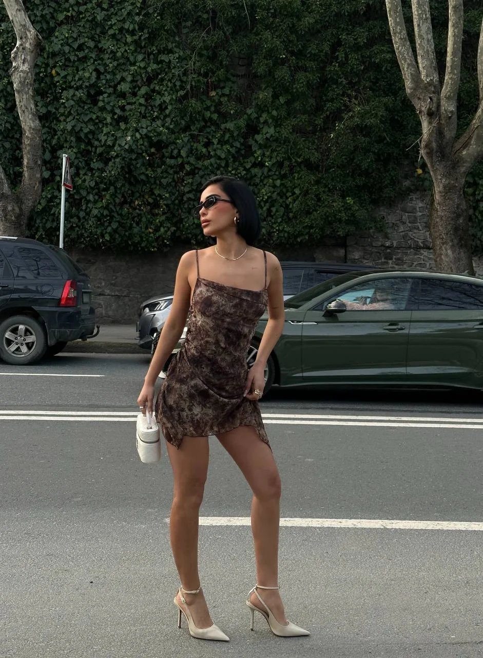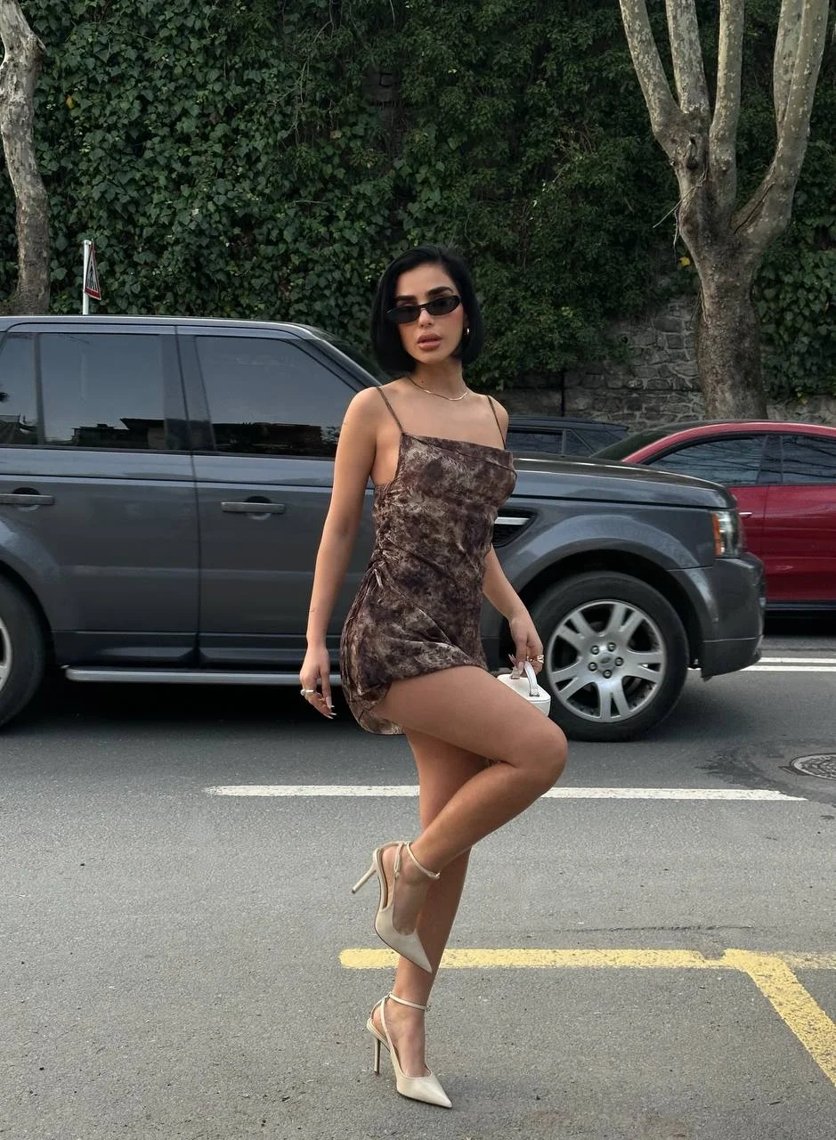 Tül Askılı Mini Kahverengi Elbise , romantik ve zarif tasarımıyla öne çıkan Kahverengi tül mini elbise, hafif ve transparan dokusuyla feminen bir siluet sunar. İnce askılı modeli ve yumuşak dökümlü tül kumaşı sayesinde vücutta zarif bir duruş sağlar. Astarlı yapısı ile iç göstermeden konforlu kullanım sunar.