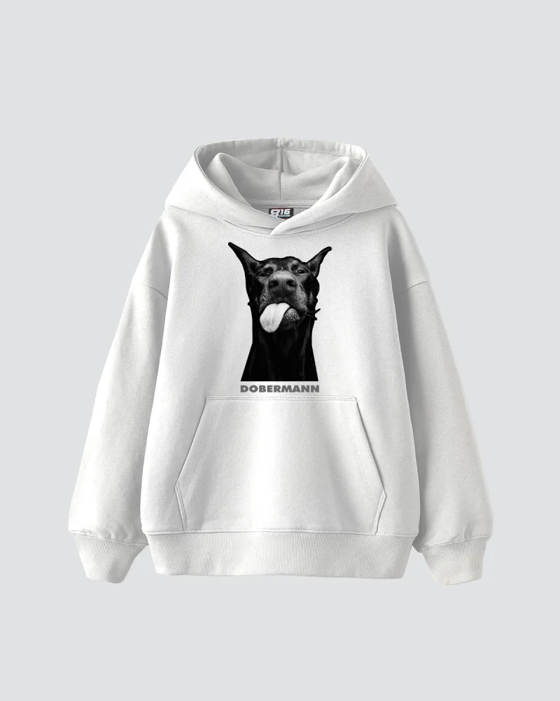 Dobermann Baskılı Oversize Kadın Beyaz Hoodie