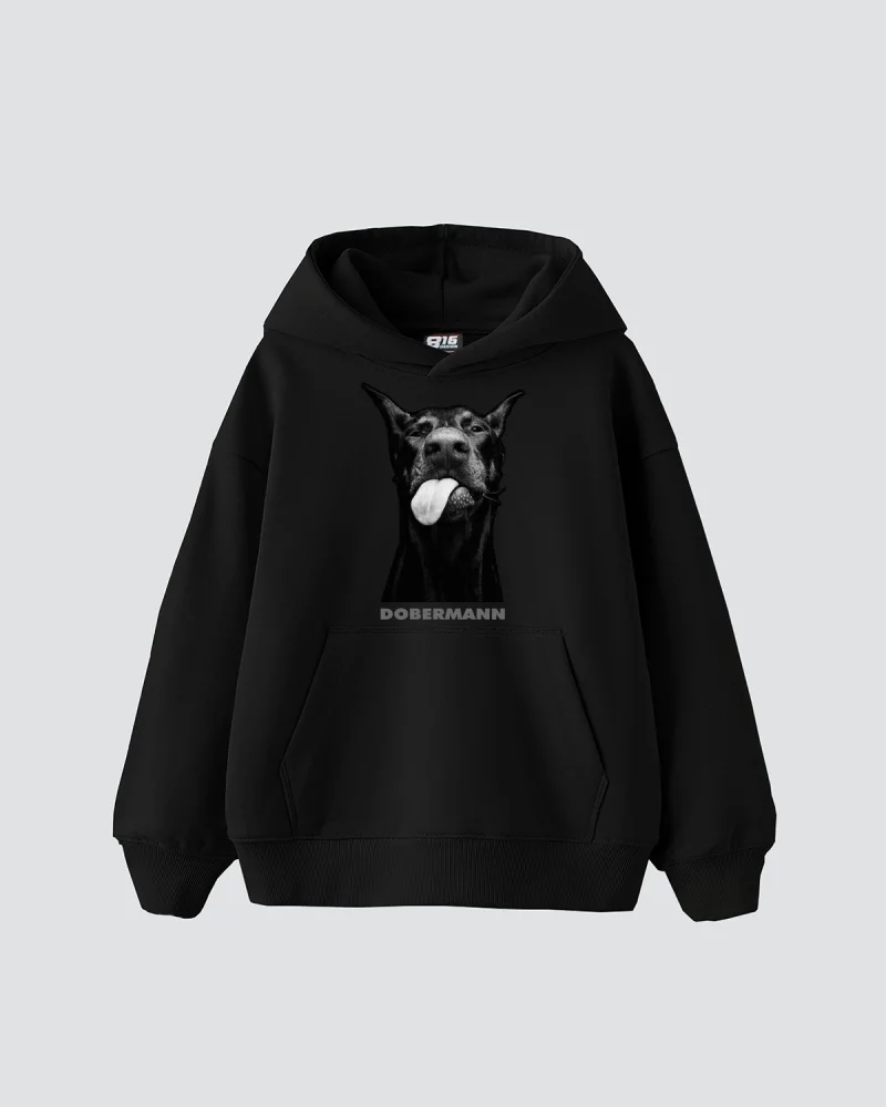 Dobermann Baskılı Oversize Kadın Siyah Hoodie
