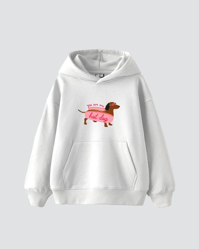 Hot Dog Baskılı Oversize Kadın Beyaz Hoodie