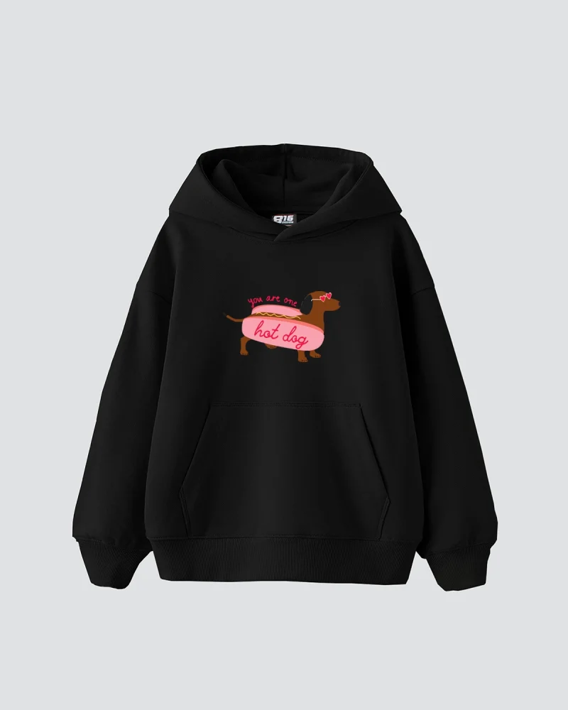 Hot Dog Baskılı Oversize Kadın Siyah Hoodie