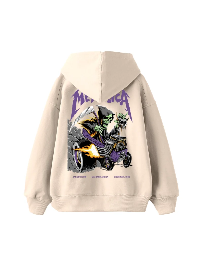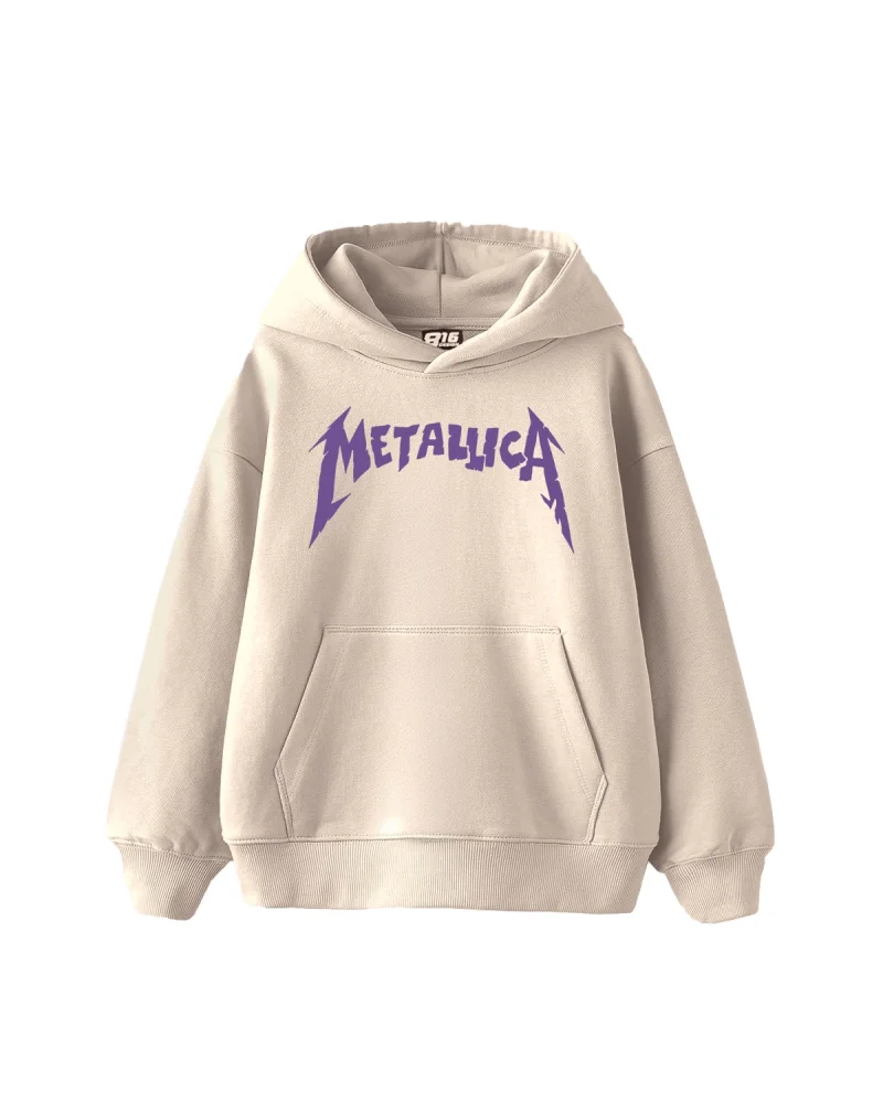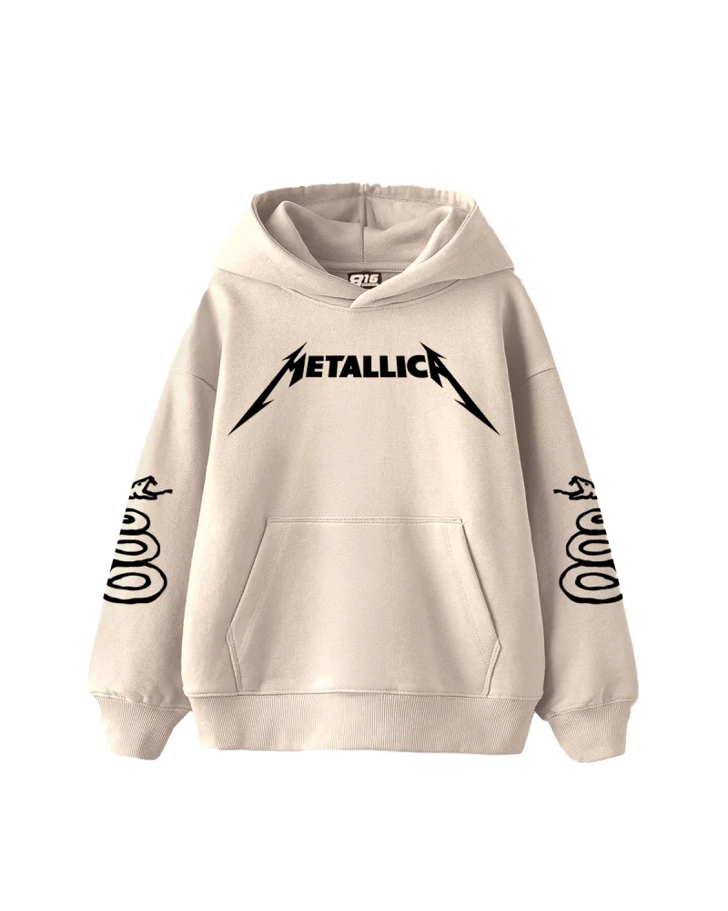 Metallica Mor Baskılı Oversize Kadın Bej Hoodie