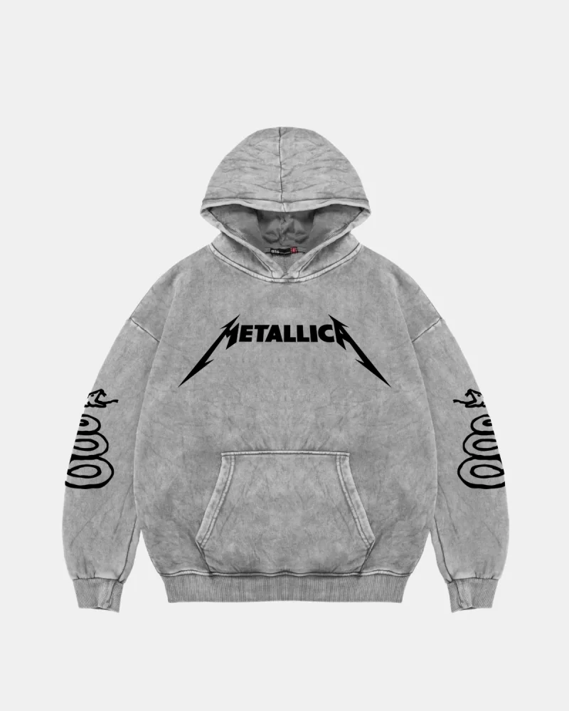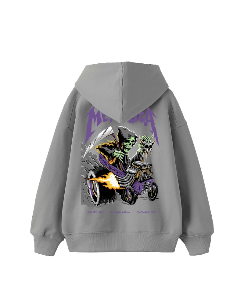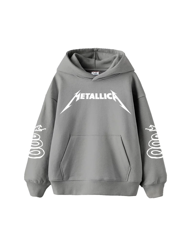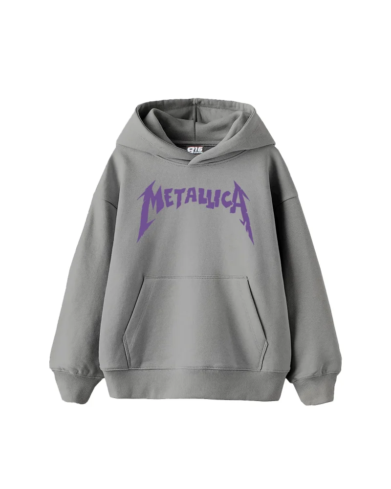 Metallica Mor Baskılı Oversize Kadın Gri Hoodie