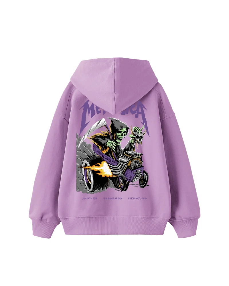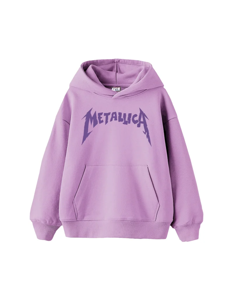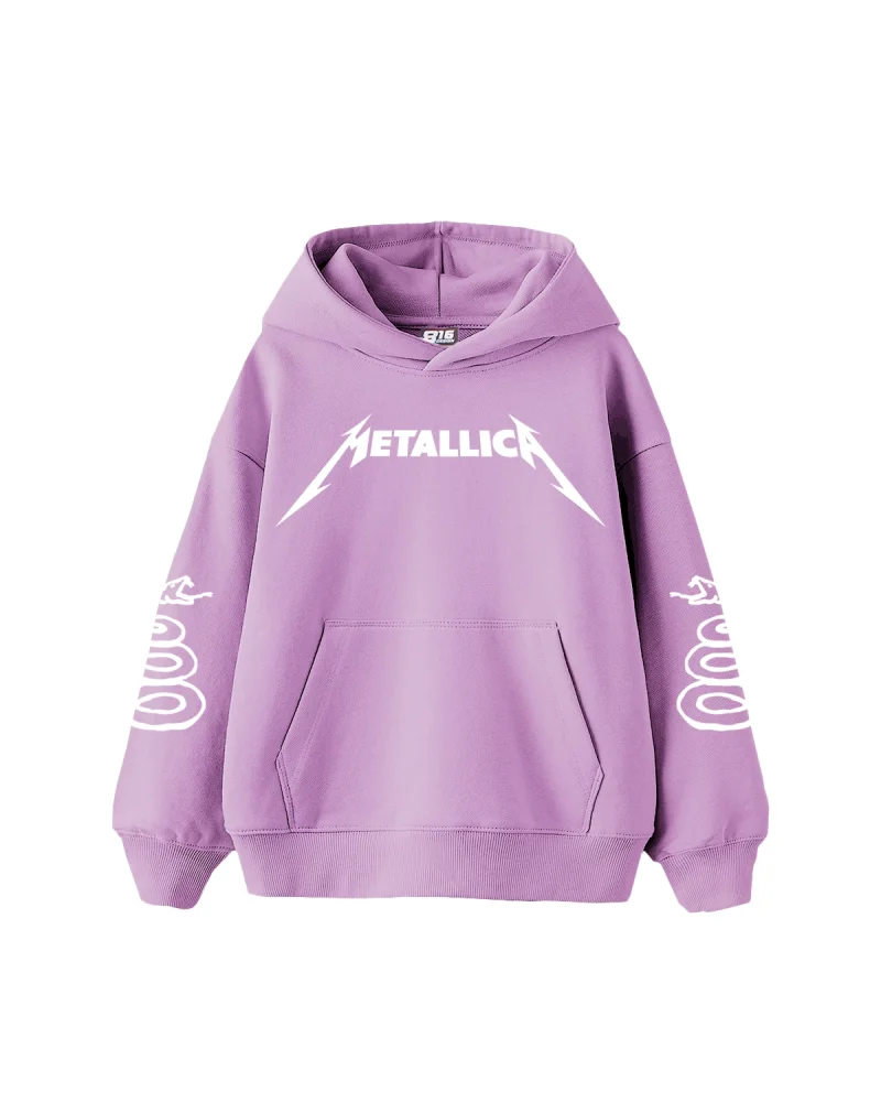 Metallica Mor Baskılı Oversize Kadın Mor Hoodie