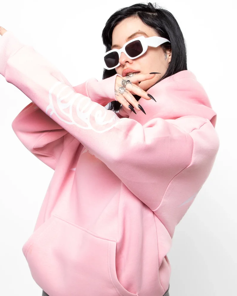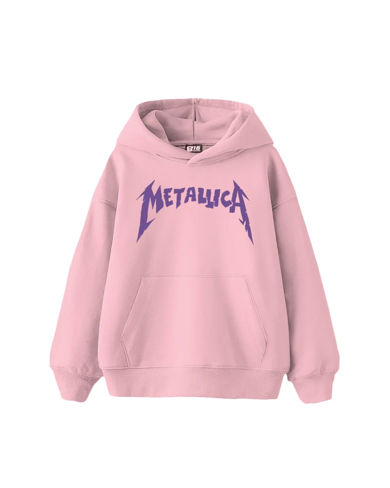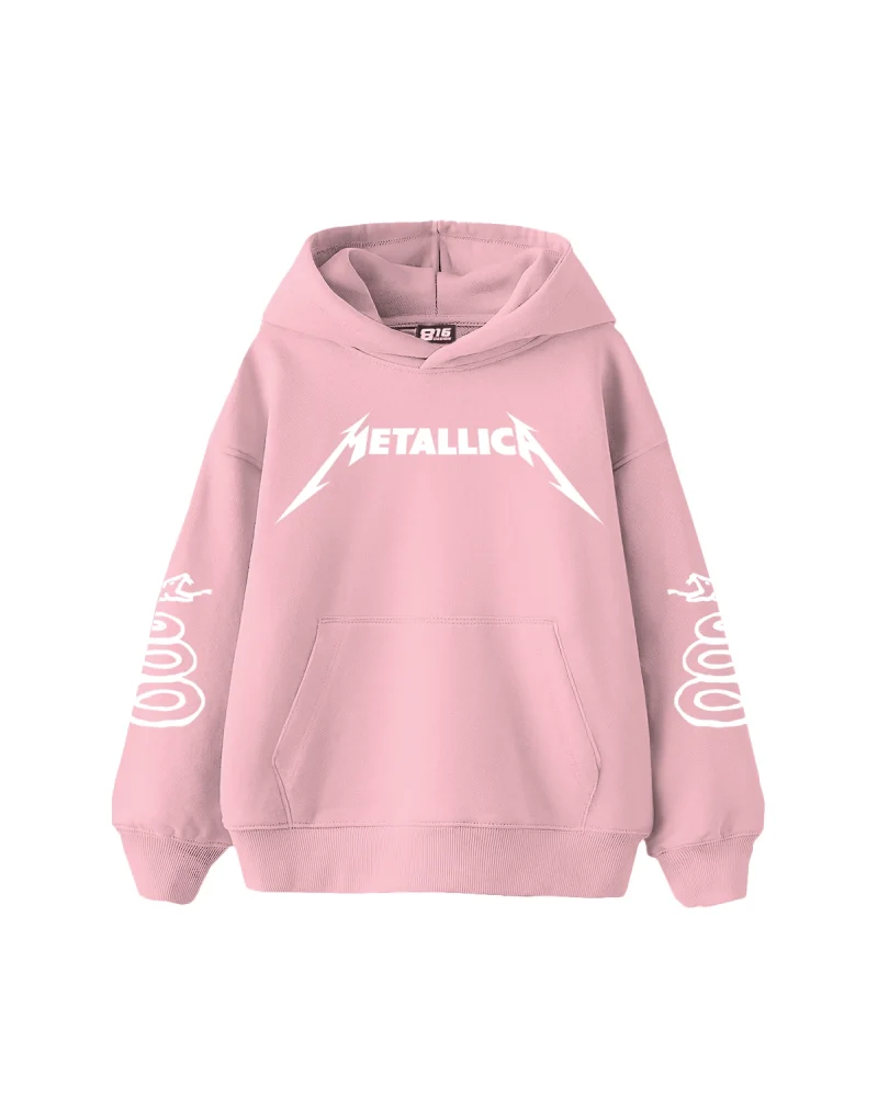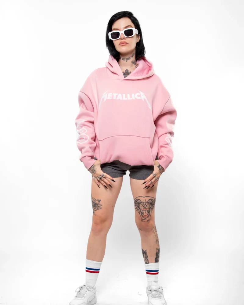 Metallica Mor Baskılı Oversize Kadın Pembe Hoodie