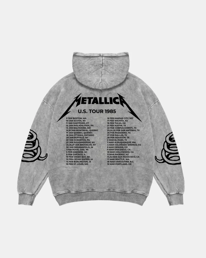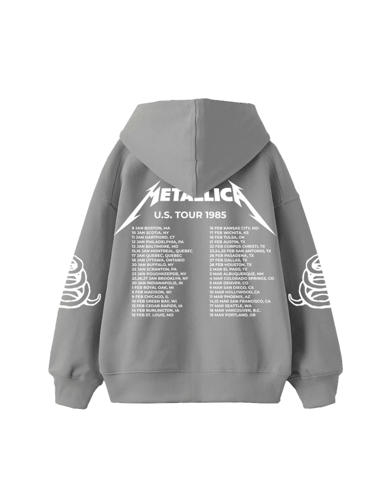 Metallica Tour 1985 Baskılı Oversize Kadın Gri Hoodie