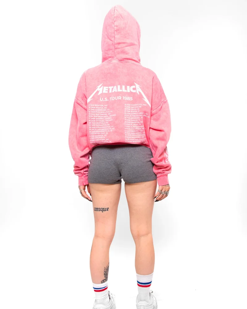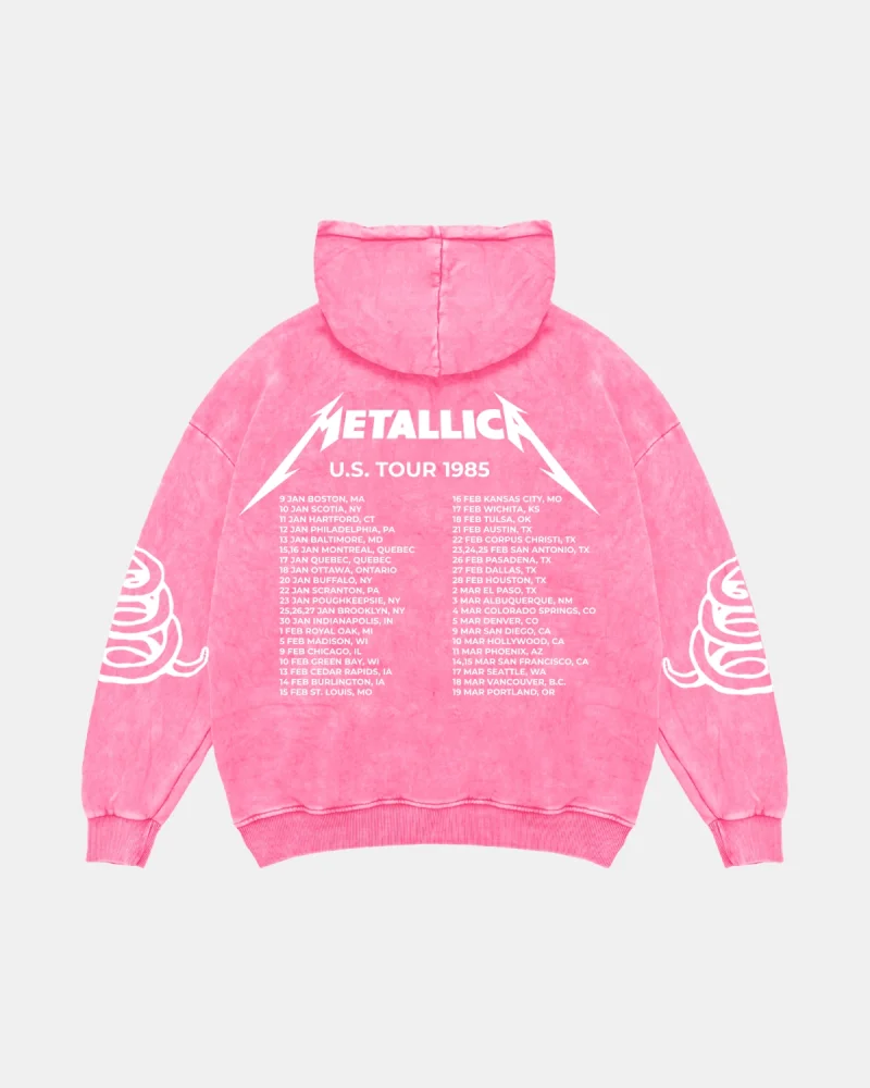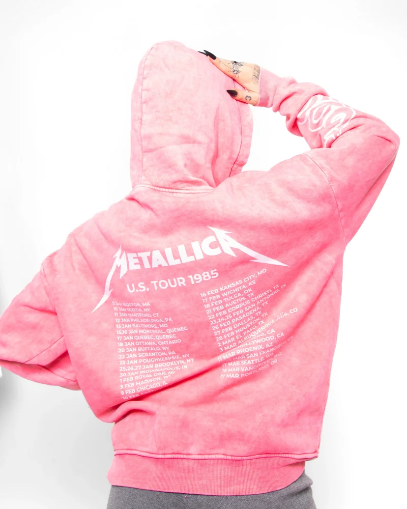 Metallica Tour 1985 Baskılı Kadın Yıkamalı Pembe Hoodie
