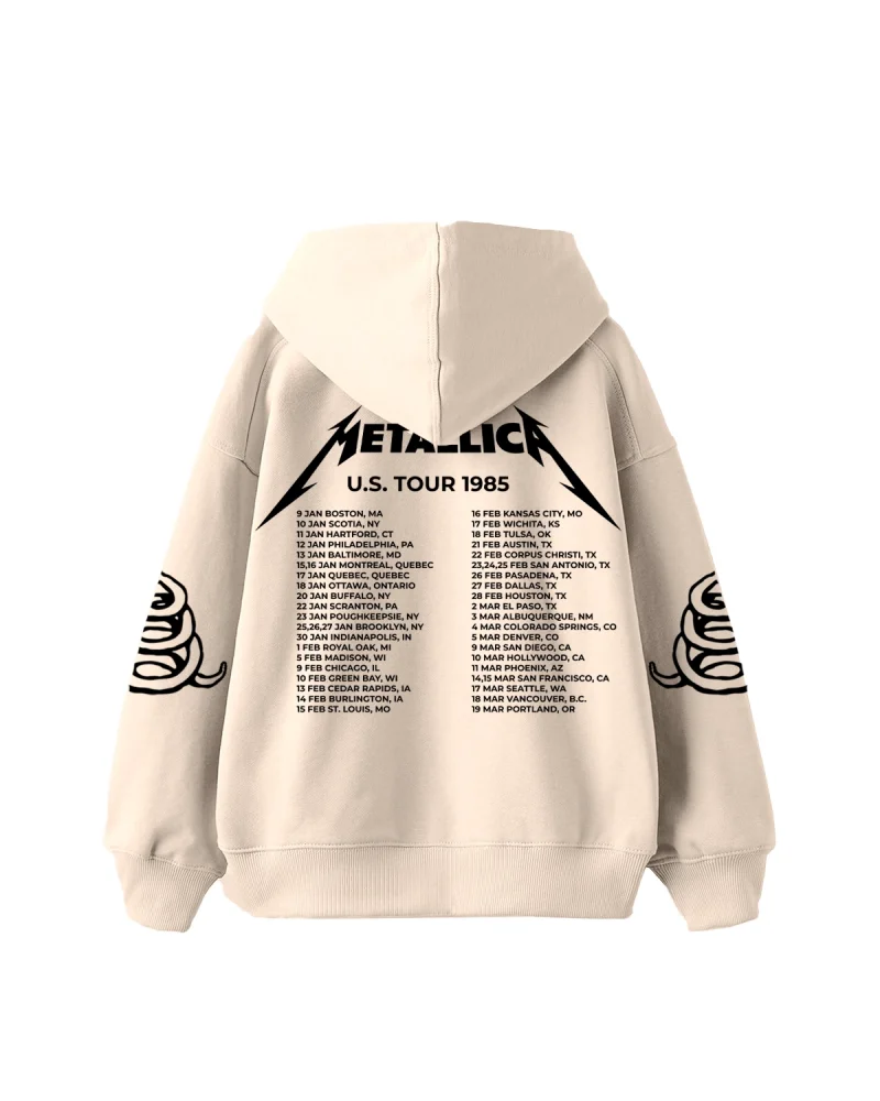Metallica Tour 1985 Baskılı Oversize Kadın Bej Hoodie