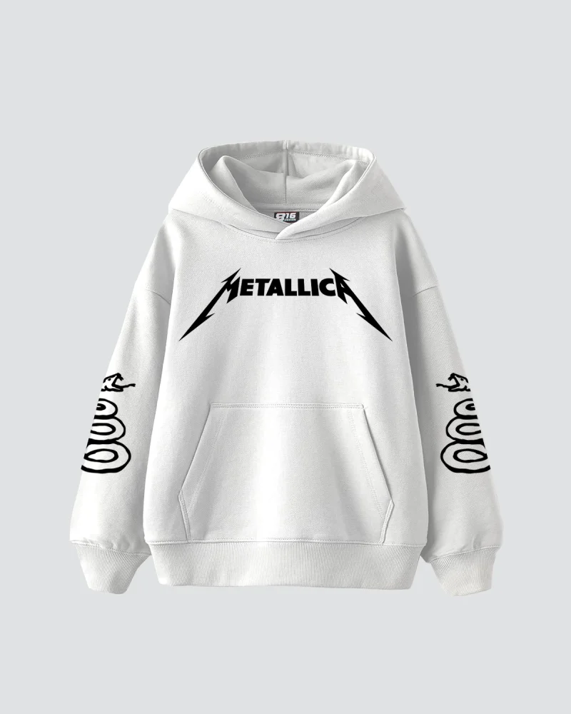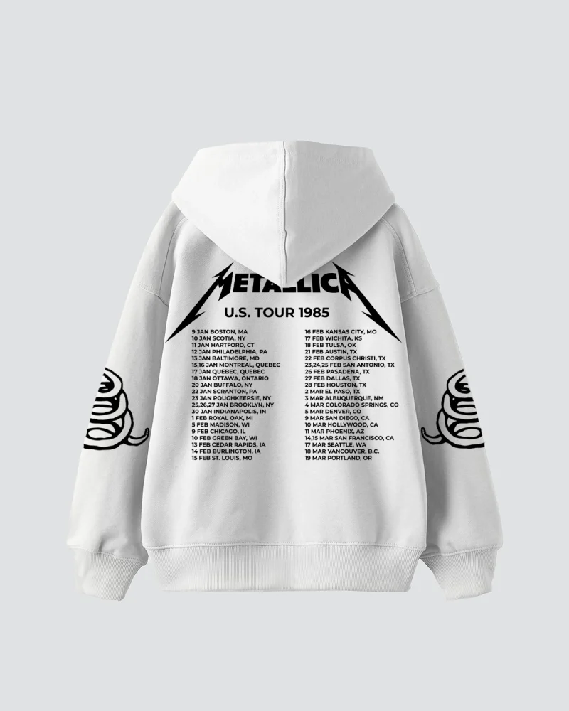 Metallica Tour 1985 Baskılı Oversize Kadın Beyaz Hoodie