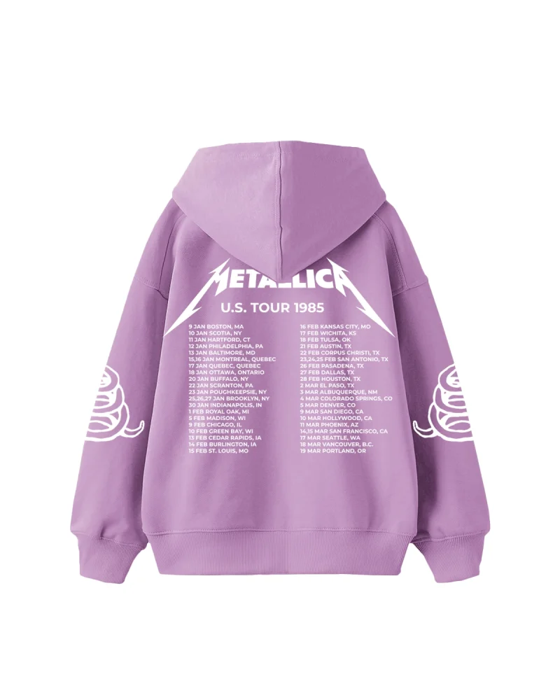 Metallica Tour 1985 Baskılı Oversize Kadın Mor Hoodie
