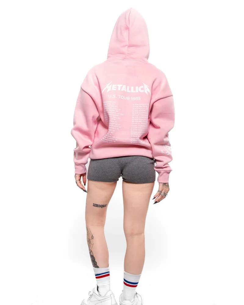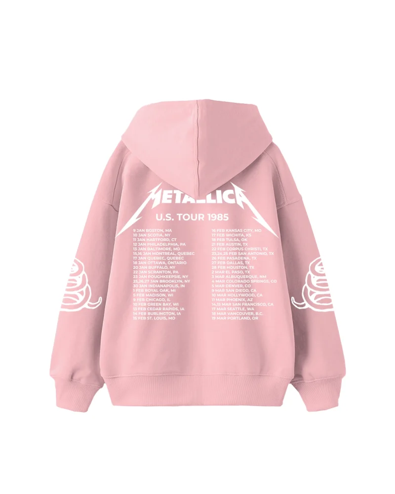 Metallica Tour 1985 Baskılı Oversize Kadın Pembe Hoodie