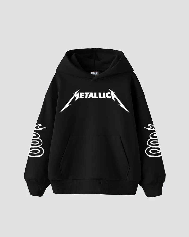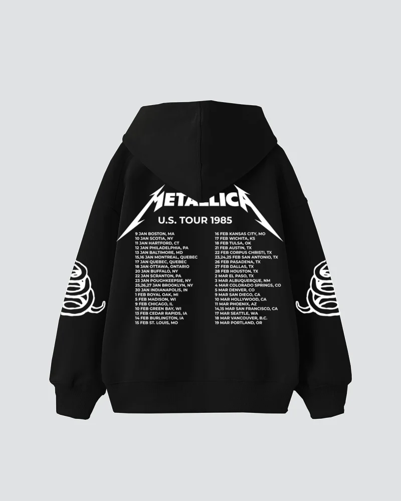 Metallica Tour 1985 Baskılı Oversize Kadın Siyah Hoodie