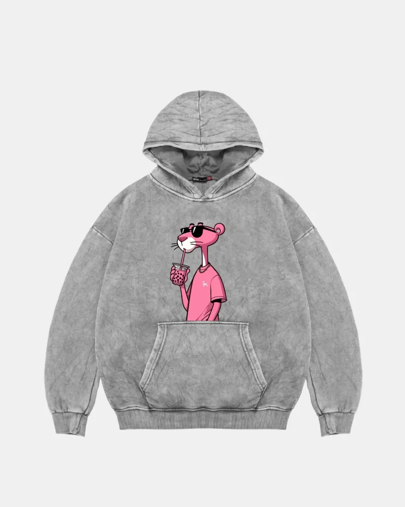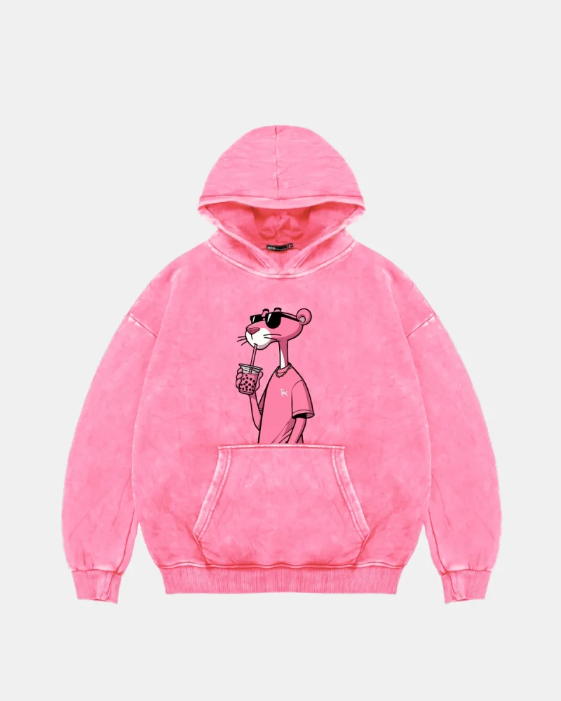 Pink Panther V2 Baskılı Kadın Yıkamalı Pembe Hoodie