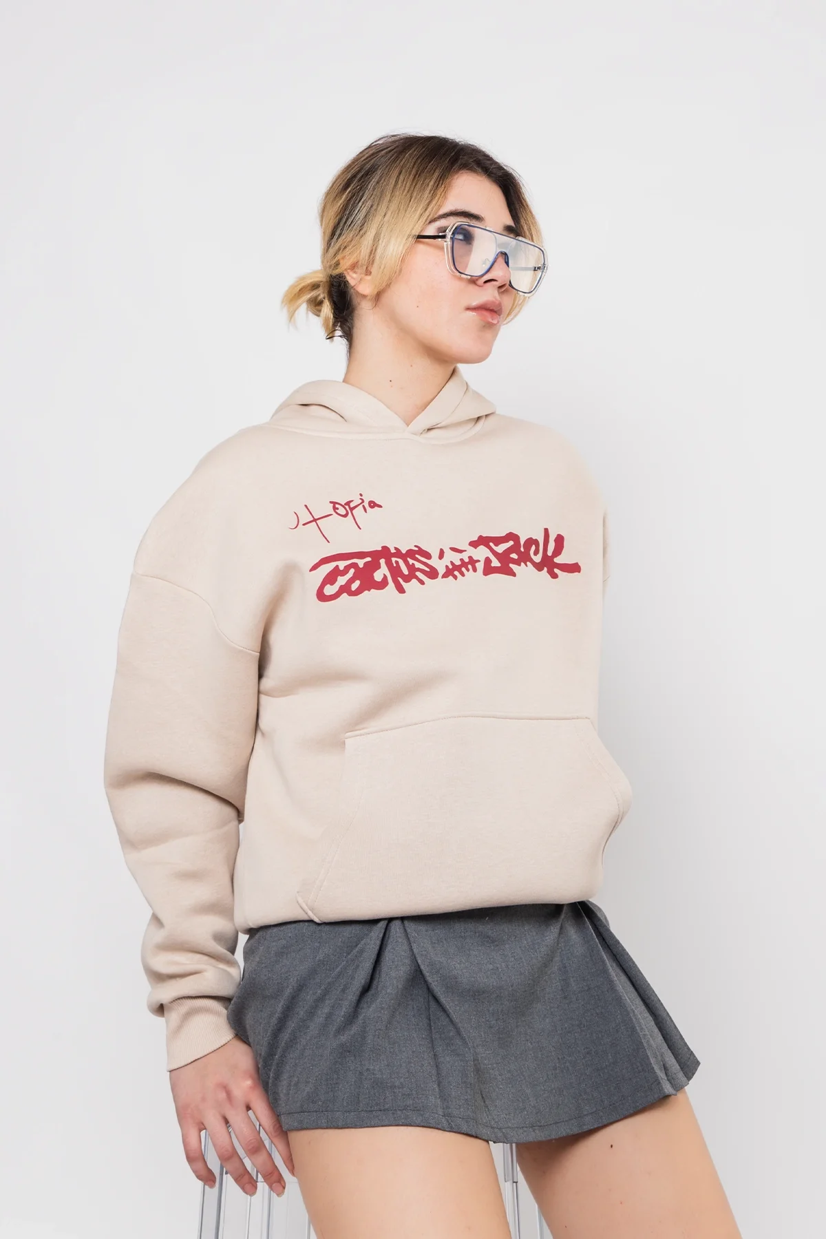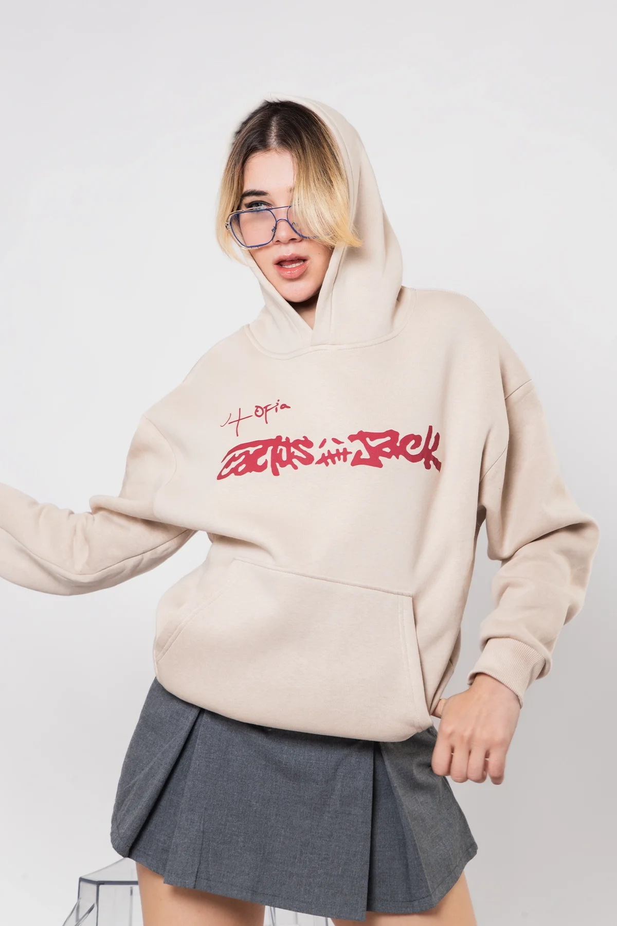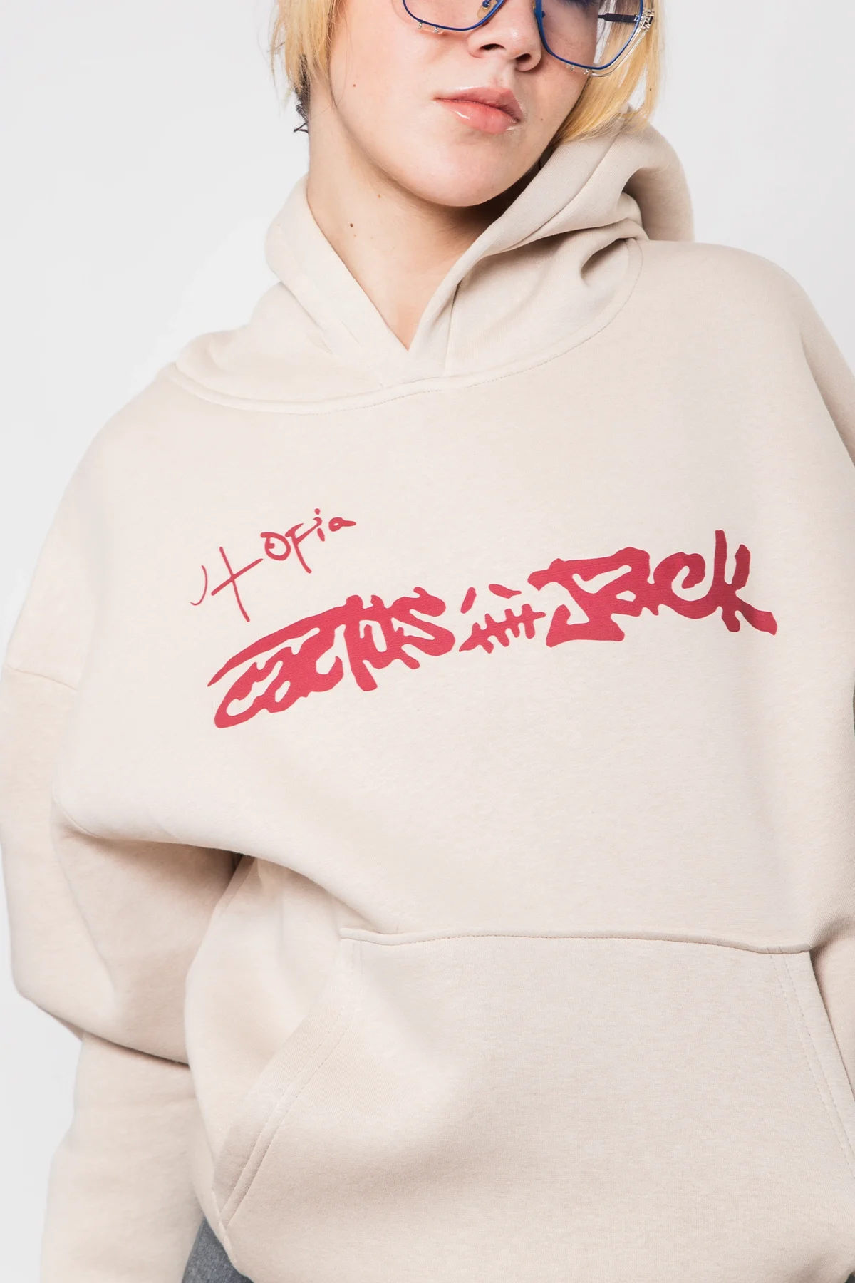 Sokak stiline ışıltılı bir dokunuş: Utopia Cactus Jack Baskılı Bej Hoodie, oversize kesimi ve göz alıcı detaylarıyla tarzını cesurca yansıtmak isteyenler için tasarlandı.