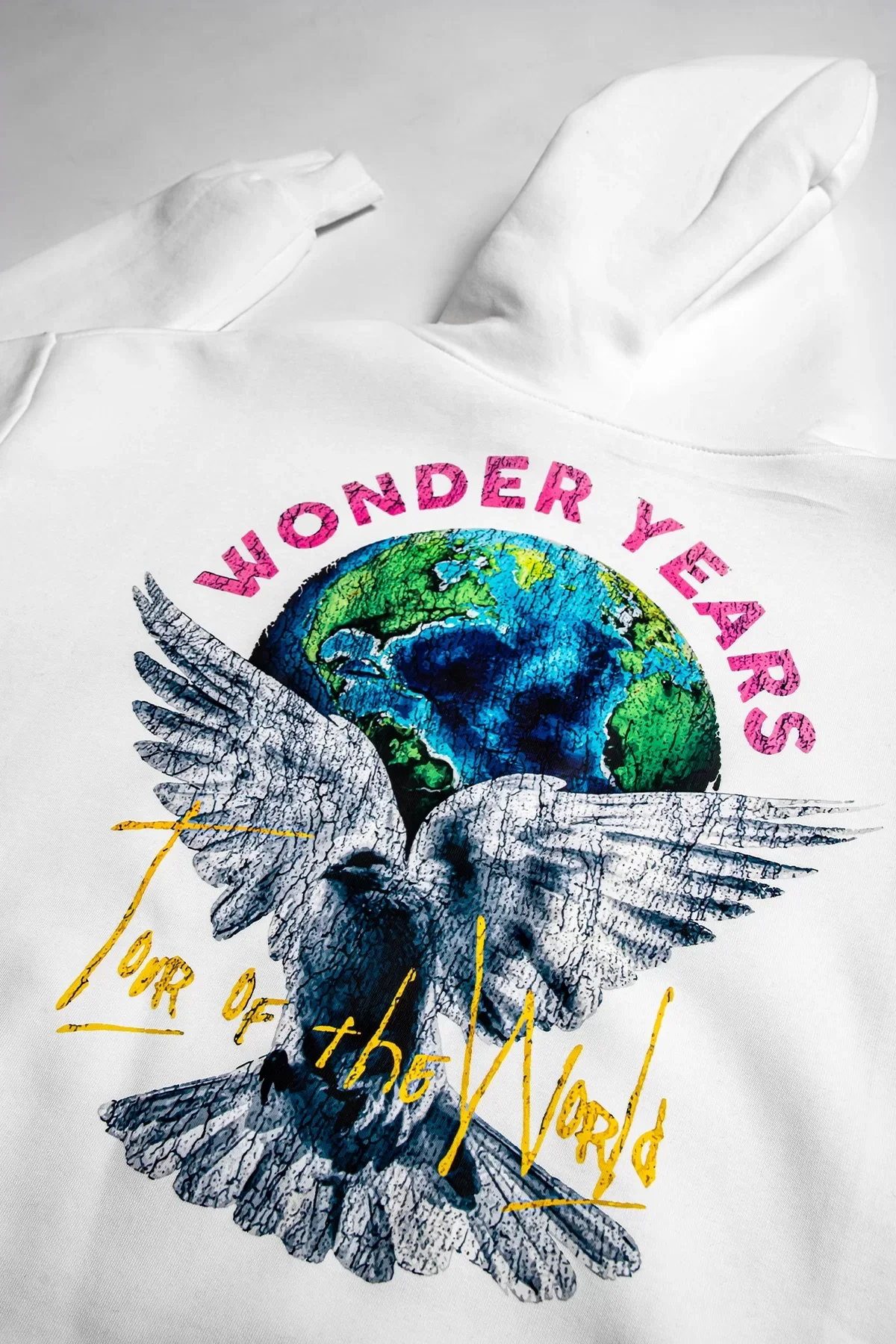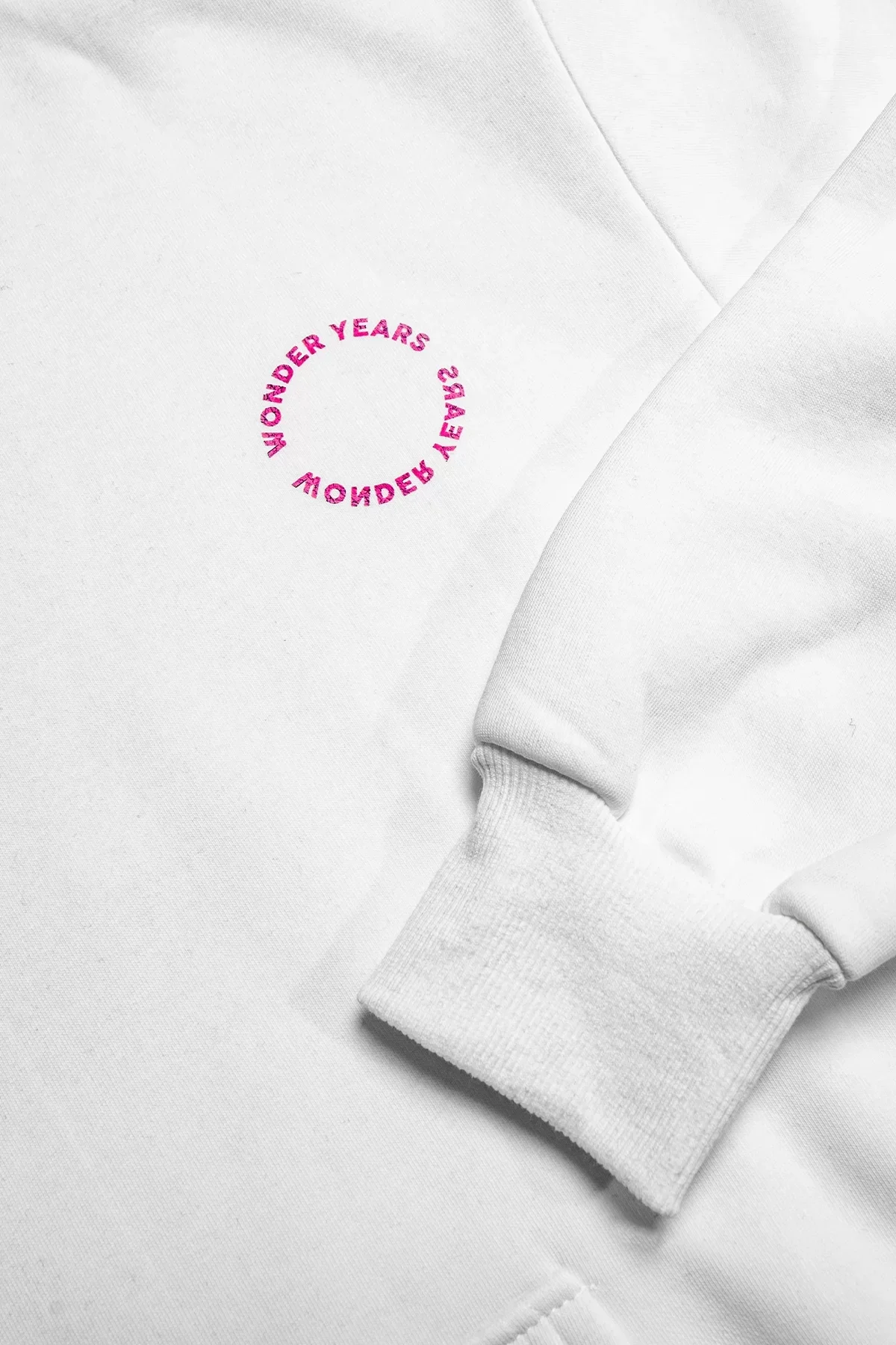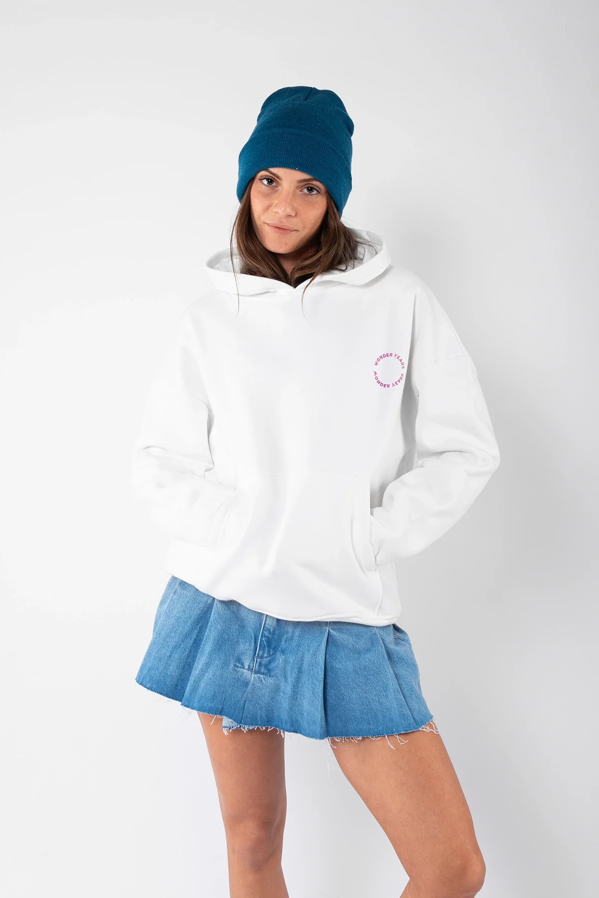 WONDER YEARS BASKILI OVERSİZE UNİSEX BEYAZ HOODİE