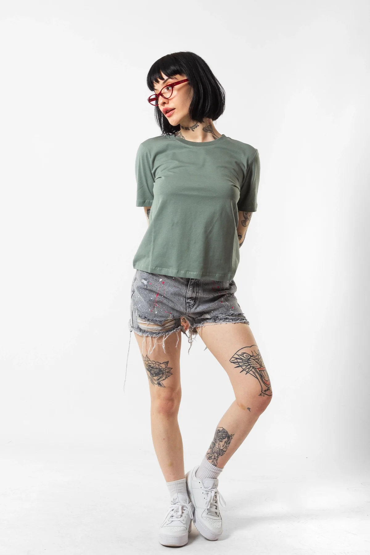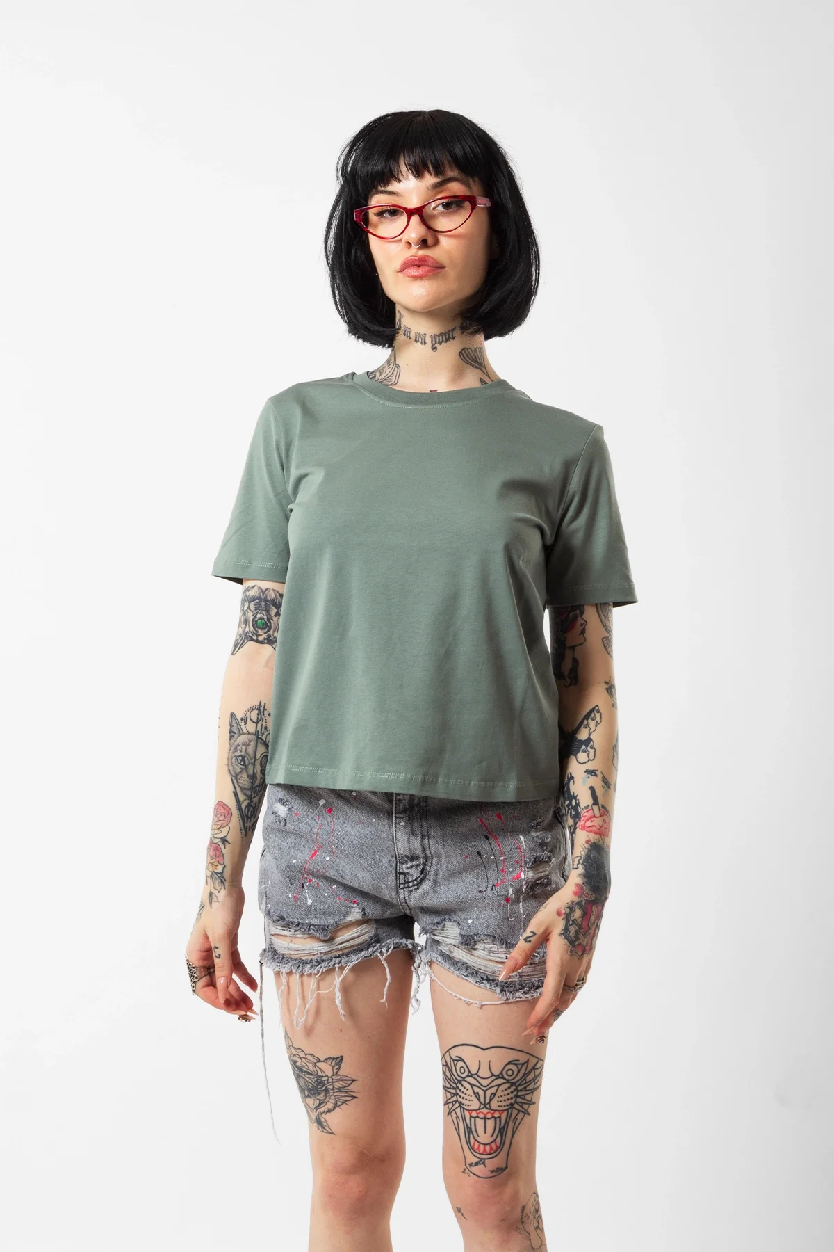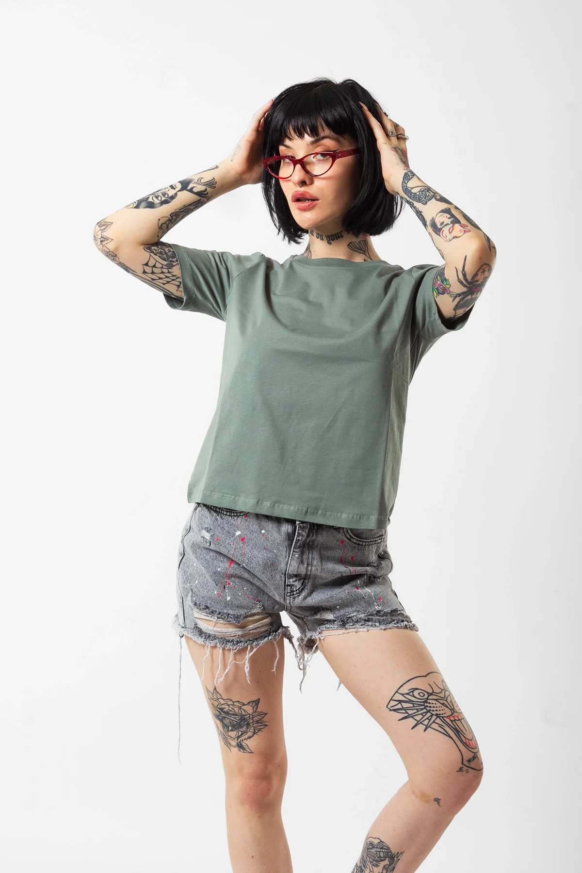 Gardırobunuzun en sade ama en vazgeçilmez parçası: Yarım Kollu Premium Basic Yeşil Tişört.