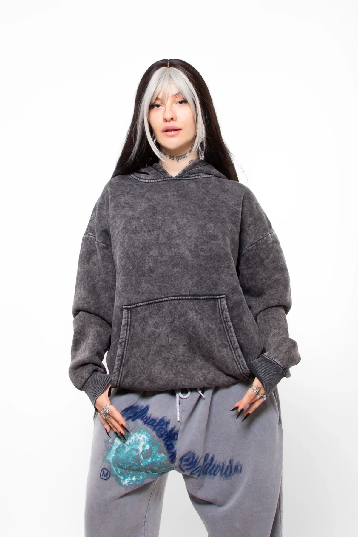 Basic Oversize Kadın Füme Hoodie