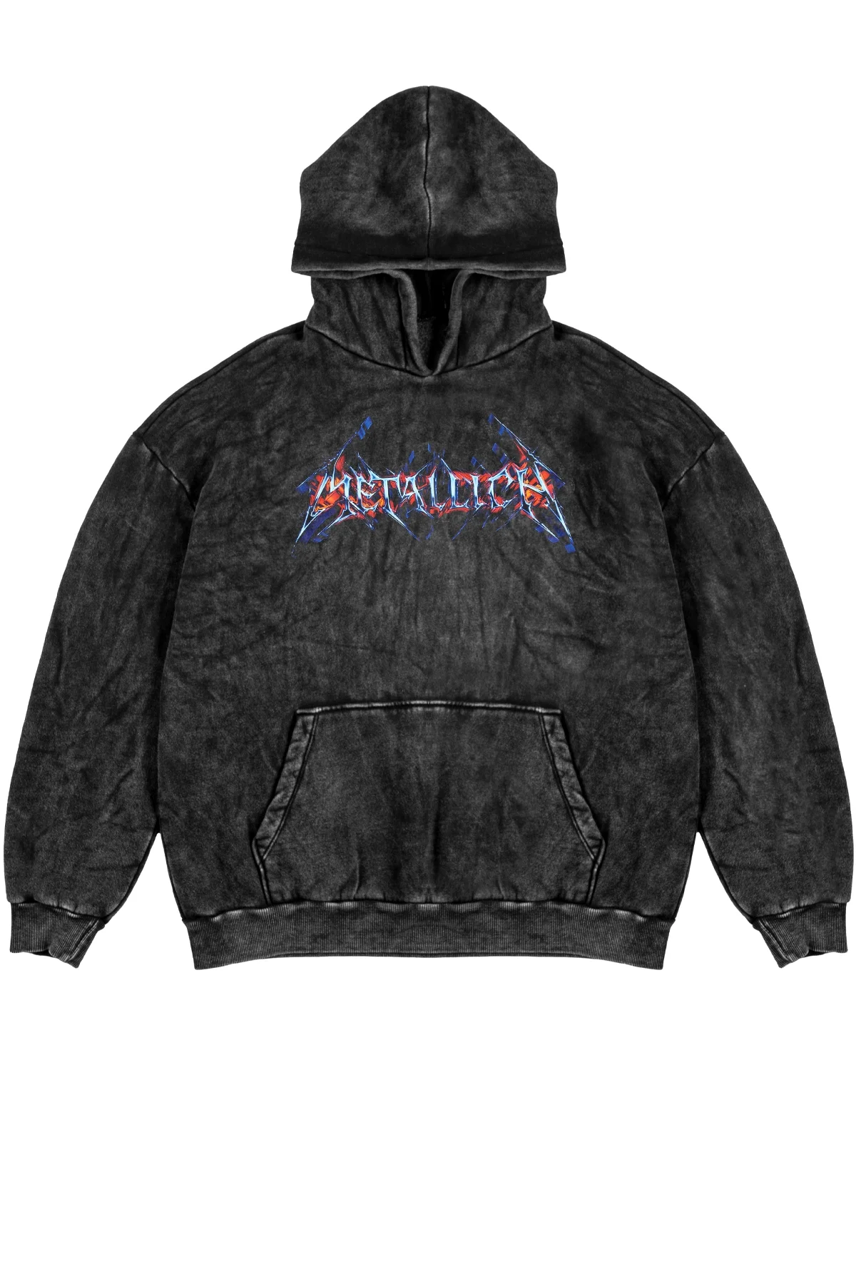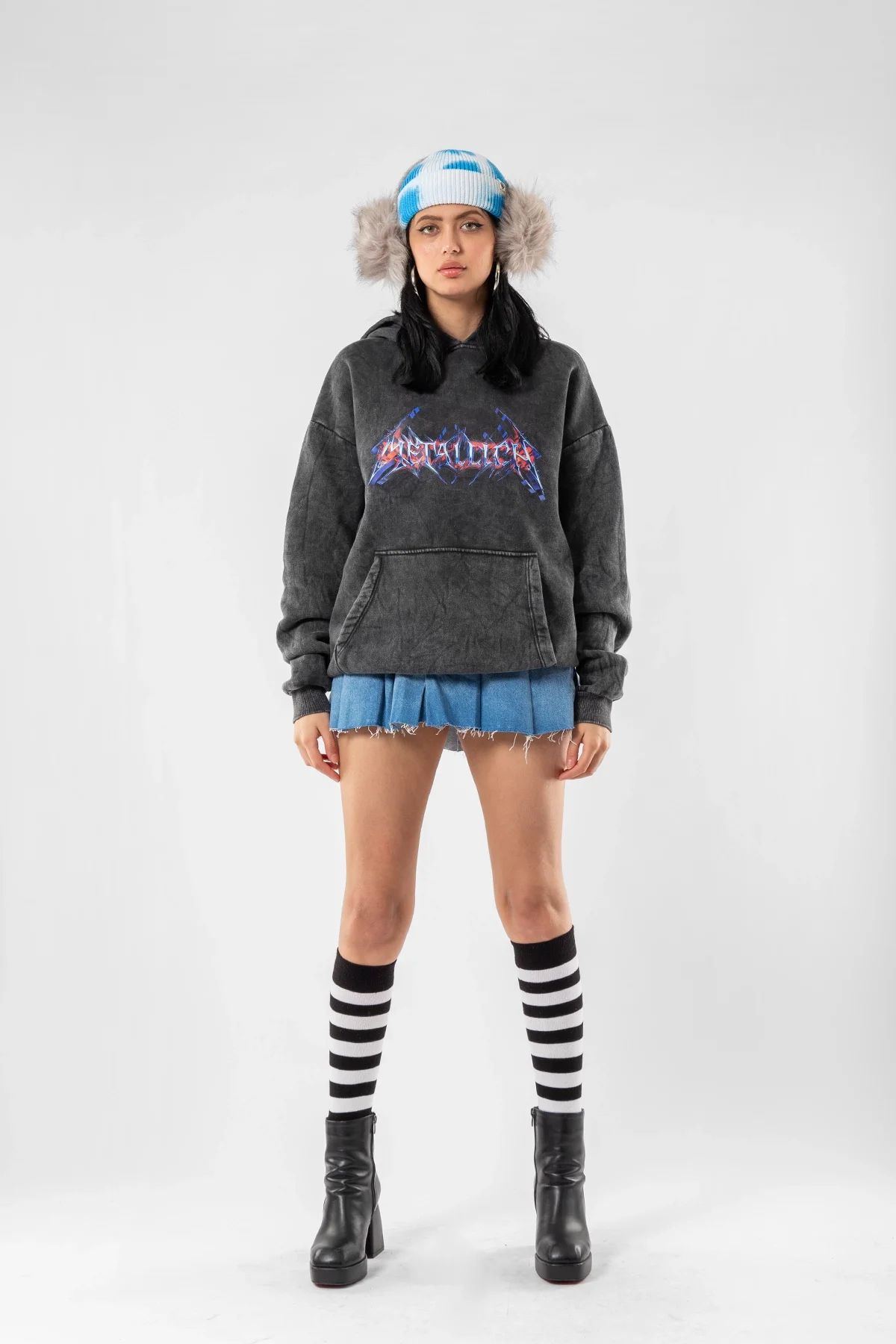 YIKAMALI COLOURFUL METALLİCA LOGO BASKILI OVERSİZE UNİSEX FÜME HOODİE