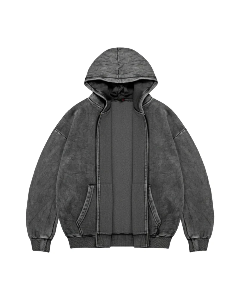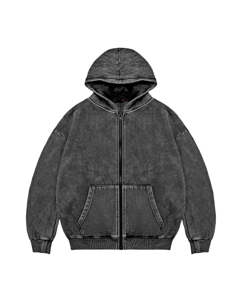 Fermuarlı Basic Kapüşonlu Unisex Yıkamalı Siyah Sweatshirt