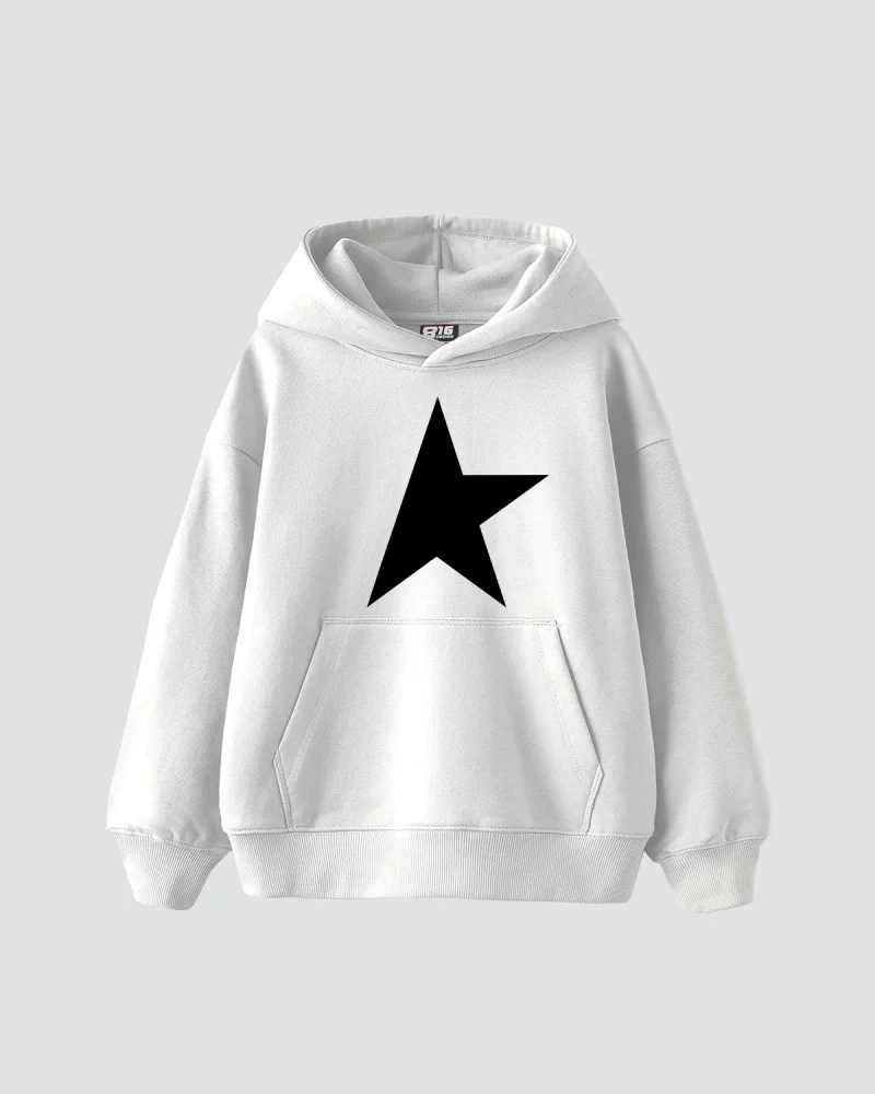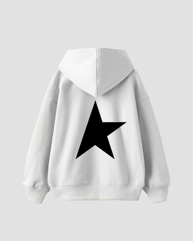 Half Star Baskılı Oversize Unisex Beyaz Hoodie