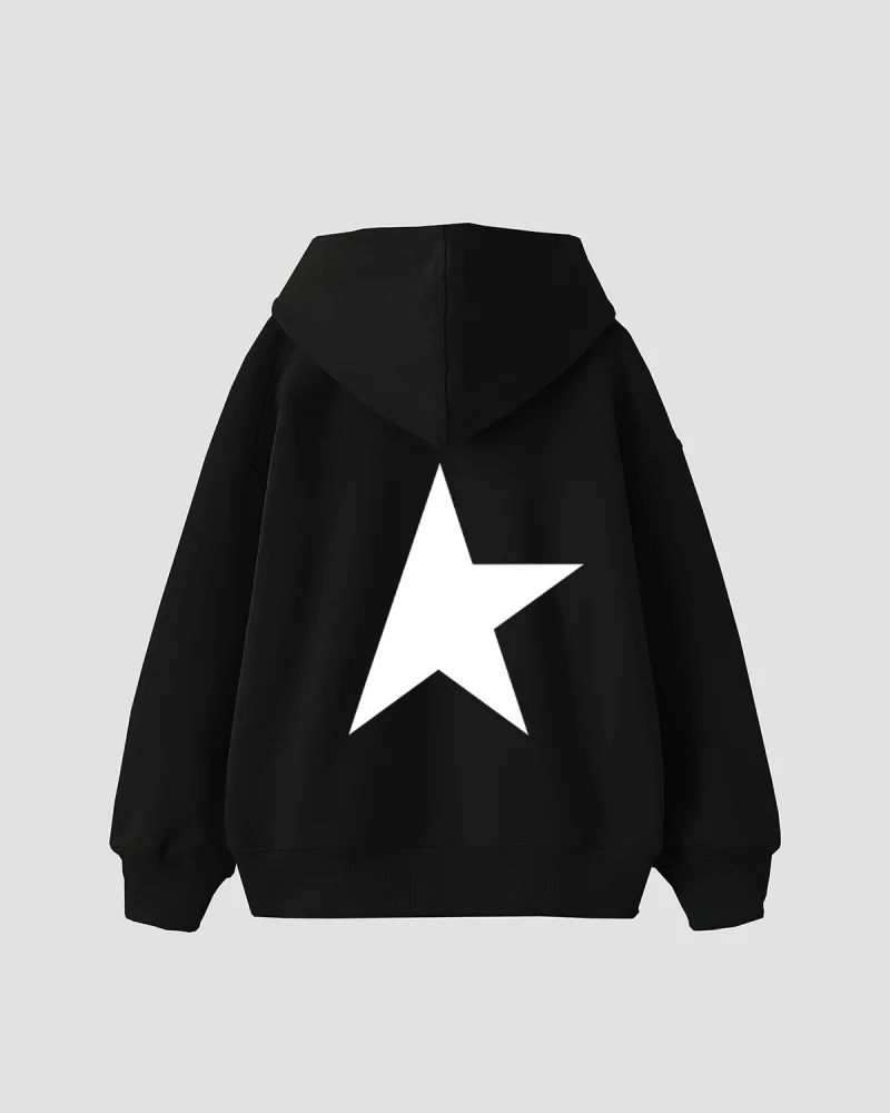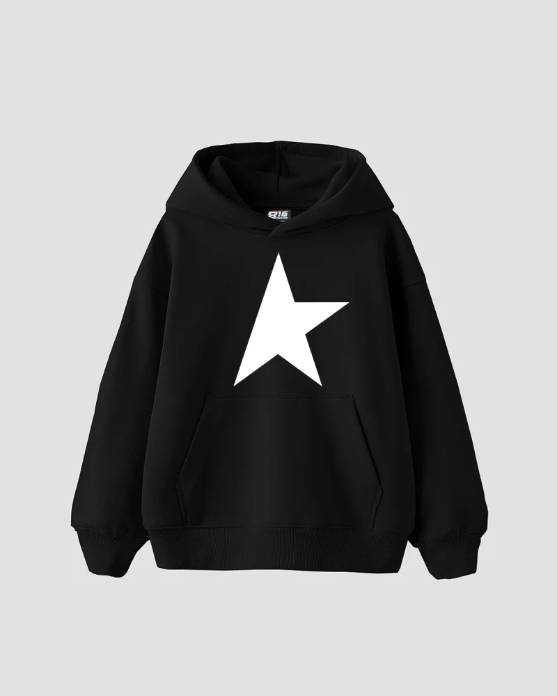 Half Star Baskılı Oversize Unisex Siyah Hoodie