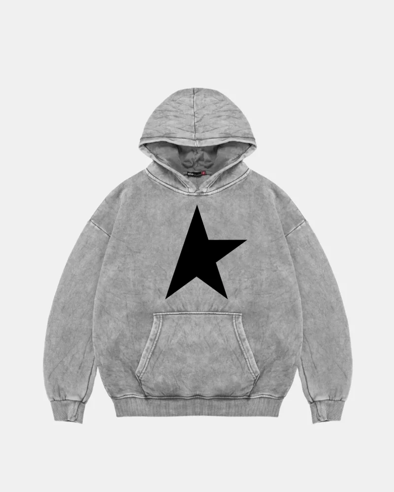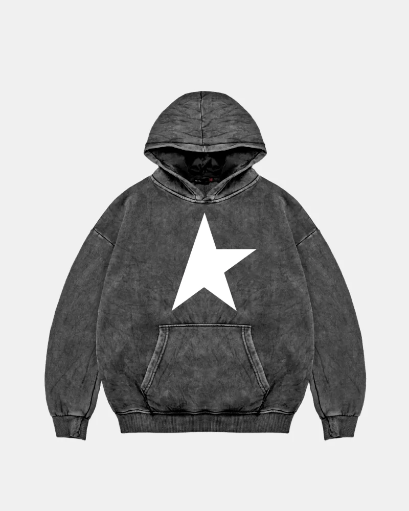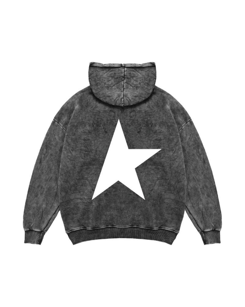 Half Star Baskılı Oversize Unisex Yıkamalı Siyah Hoodie