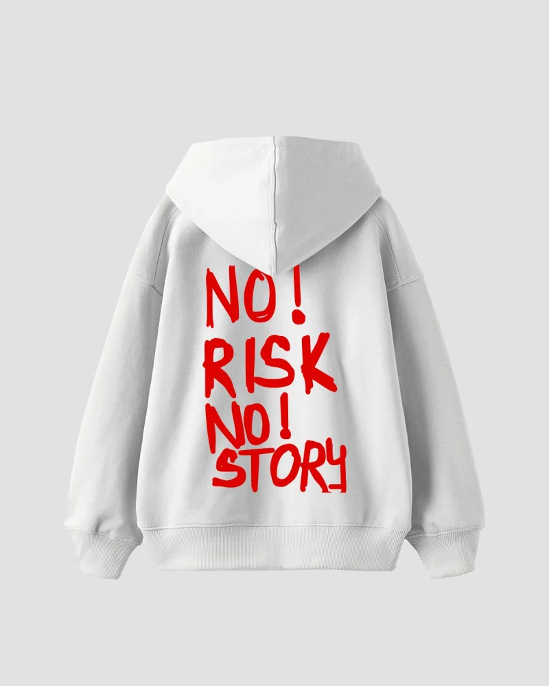 No Risk No Story Baskılı Oversize Unisex Beyaz Hoodie
