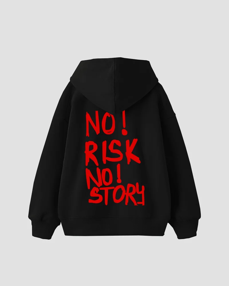 No Risk No Story Baskılı Oversize Unisex Siyah Hoodie