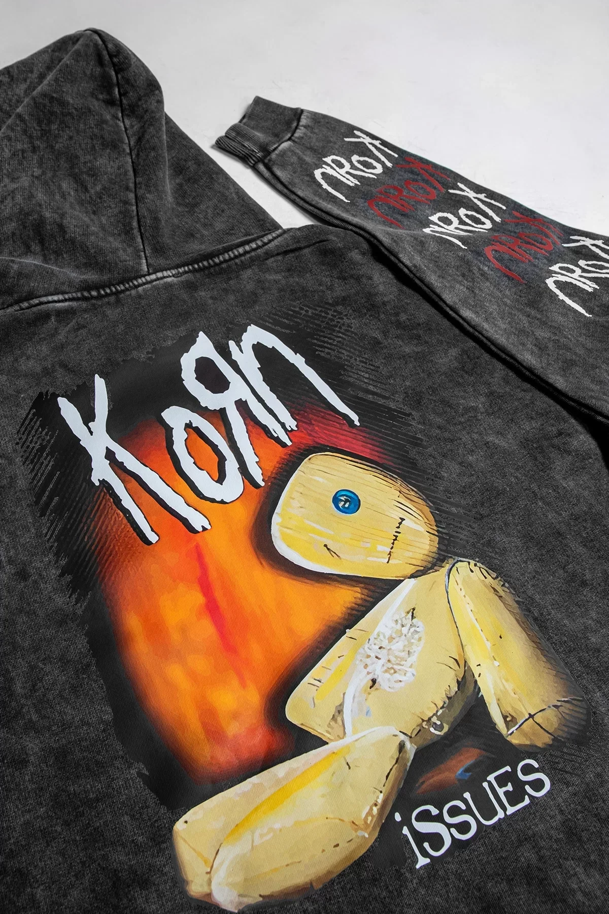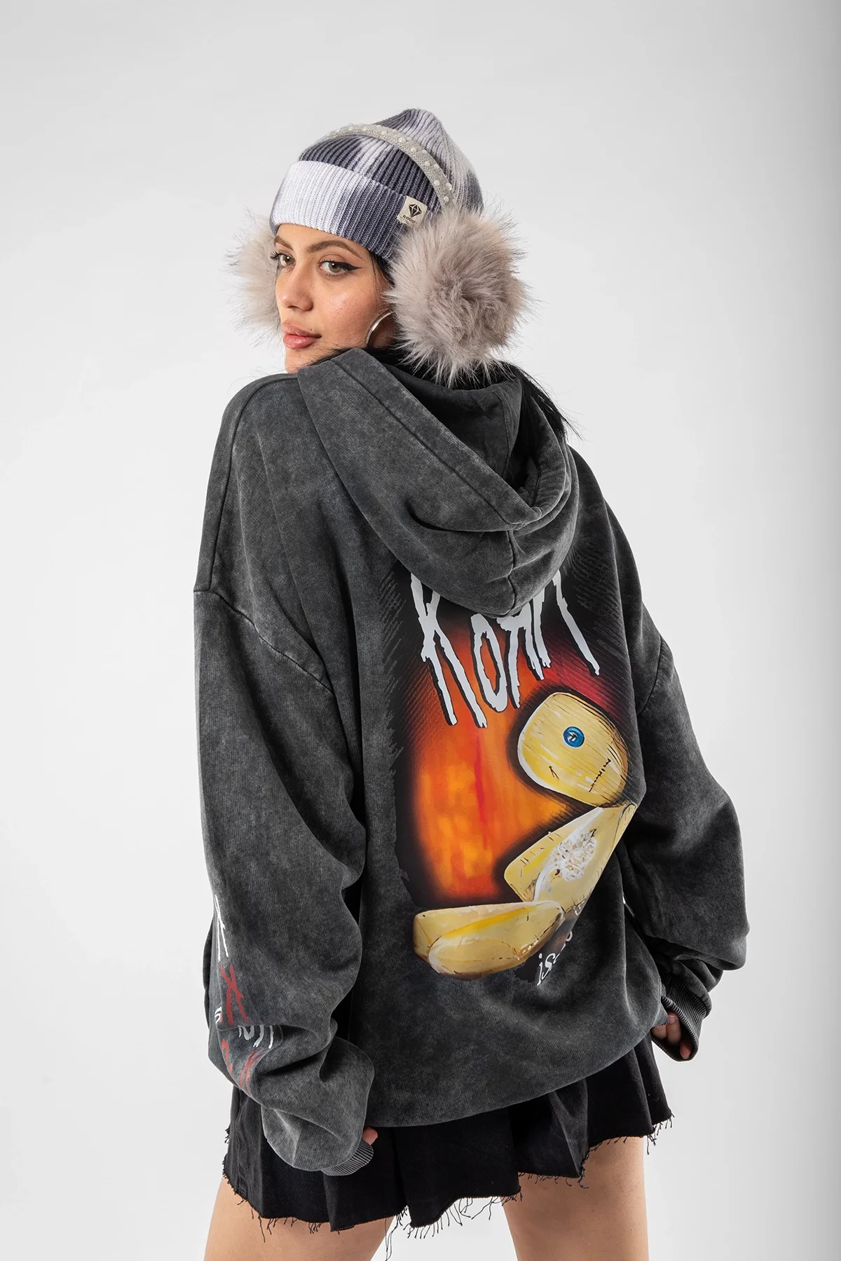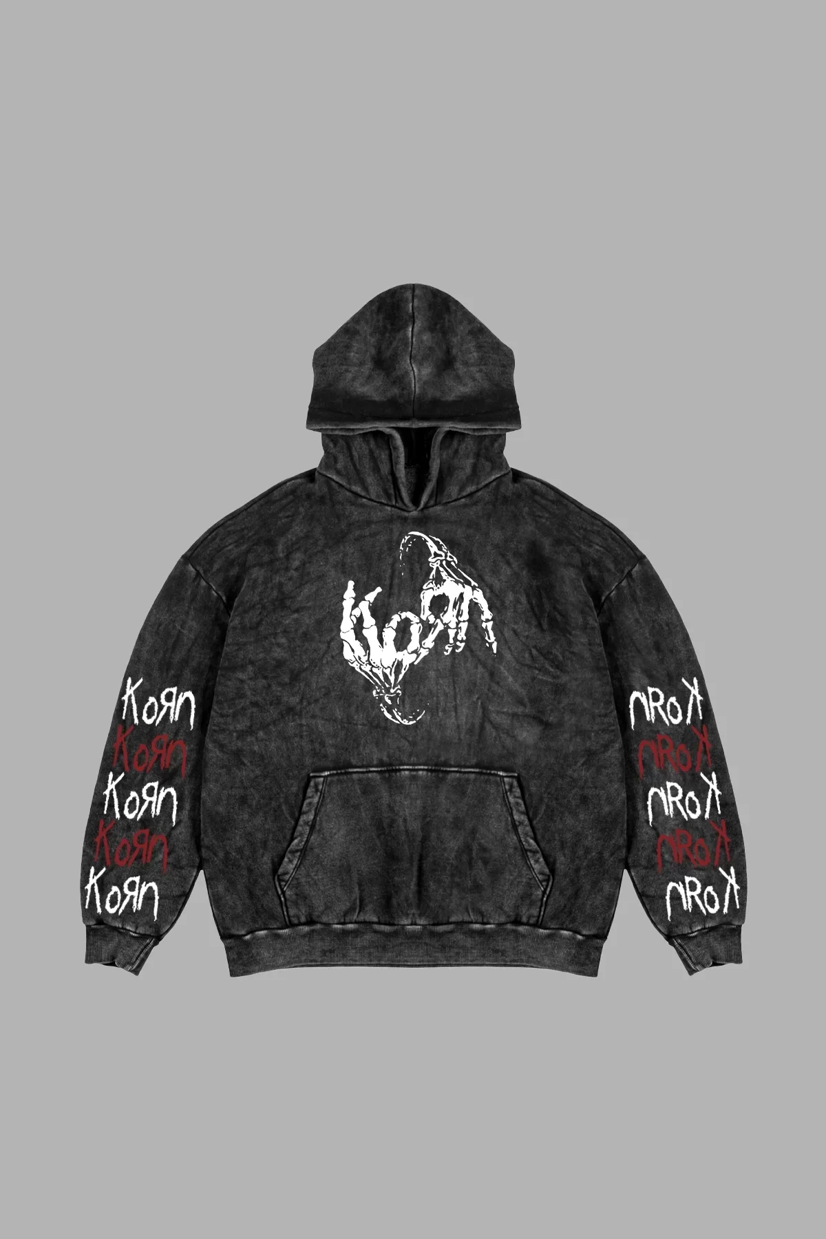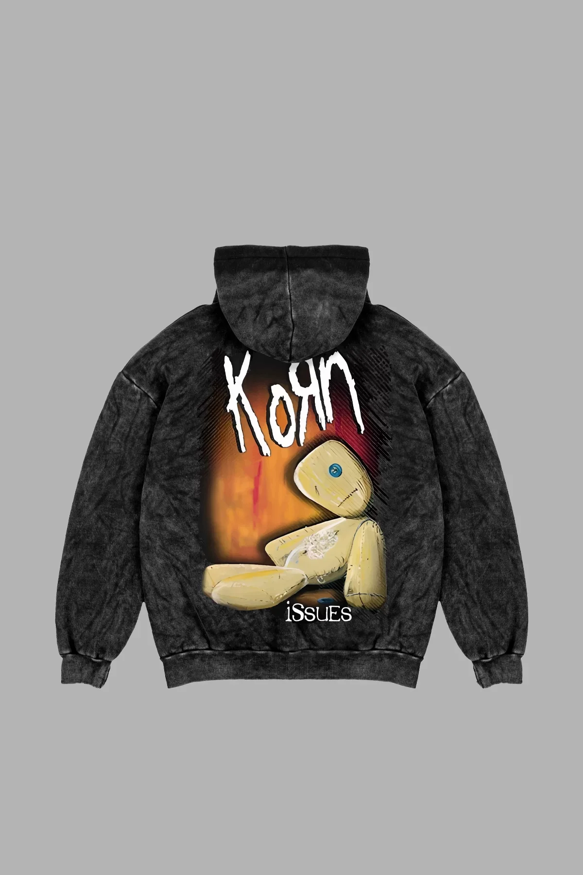 YIKAMALI KORN BASKILI OVERSİZE UNİSEX SİYAH HOODİE
