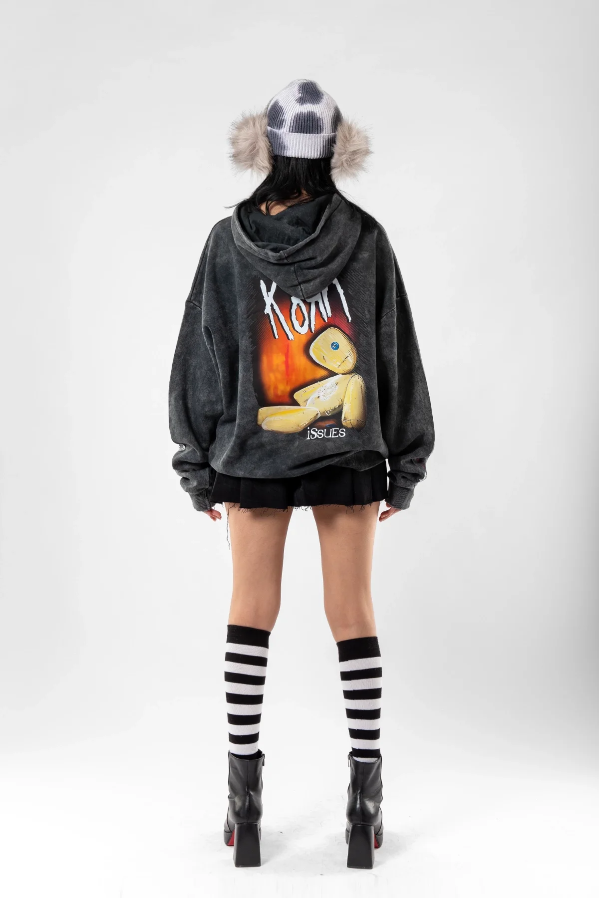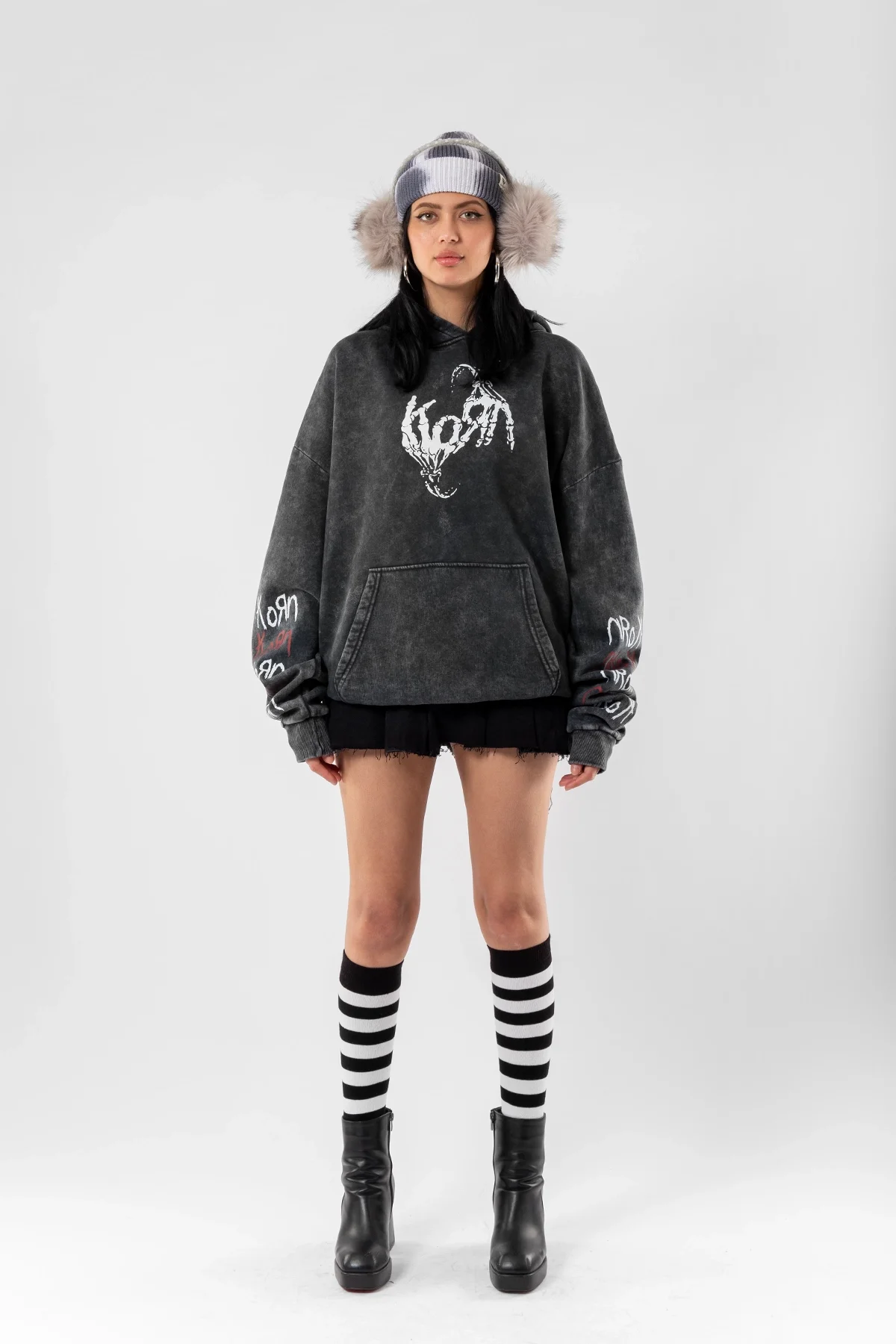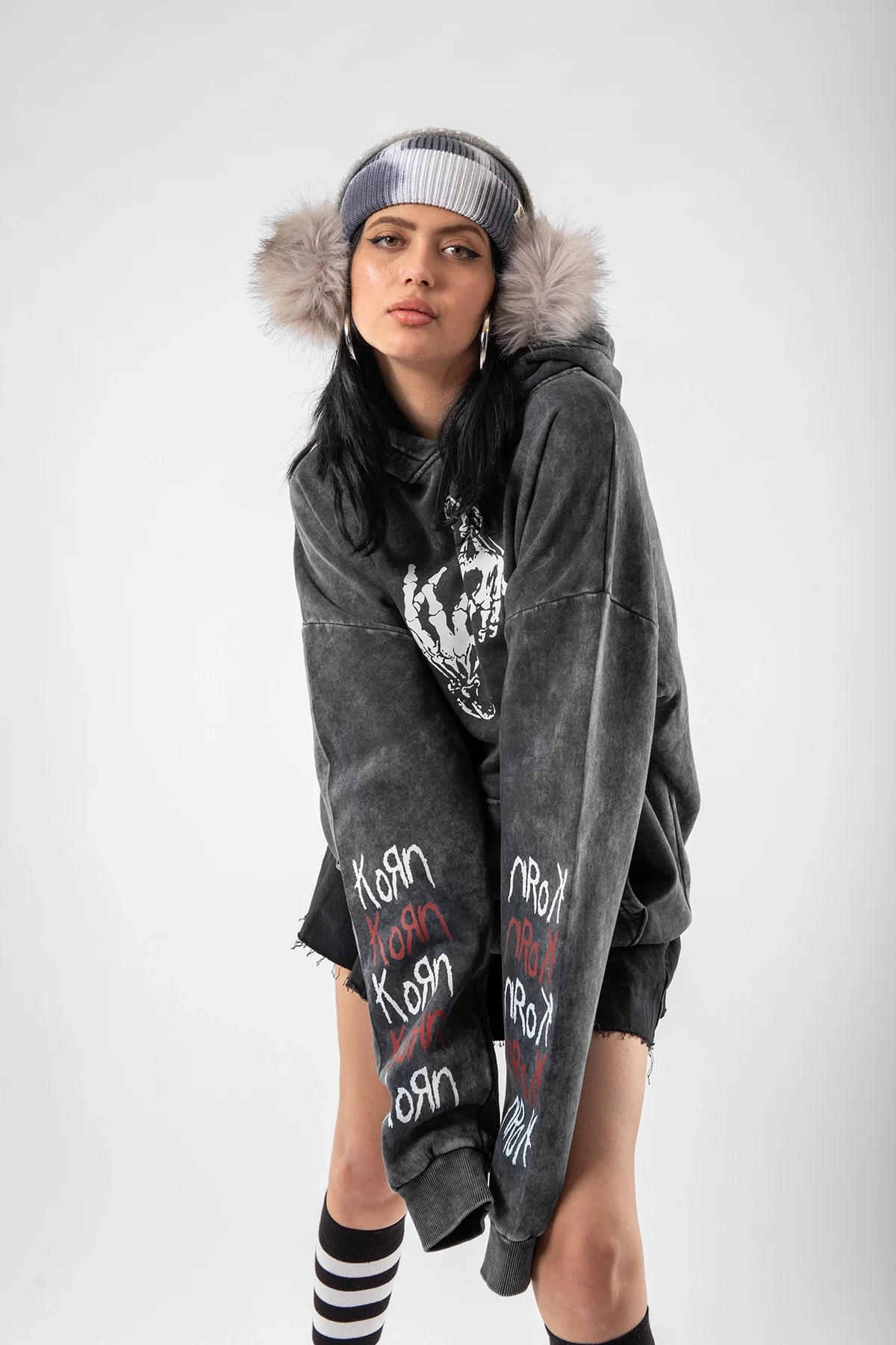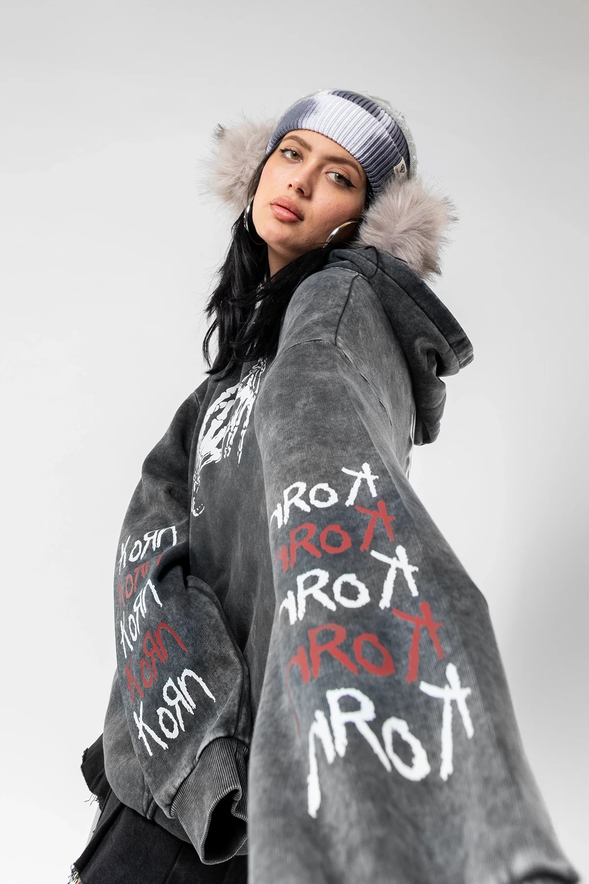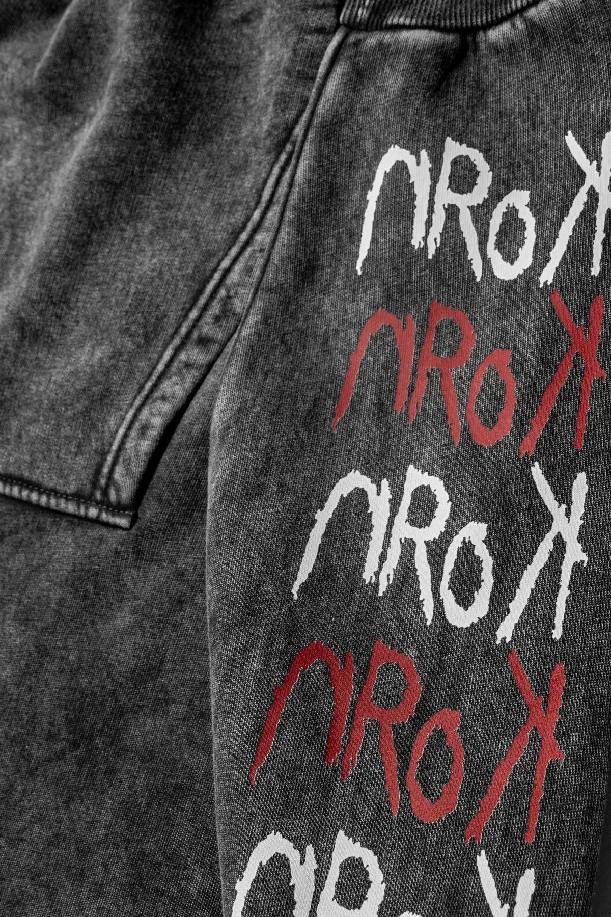 YIKAMALI KORN BASKILI OVERSİZE UNİSEX SİYAH HOODİE
