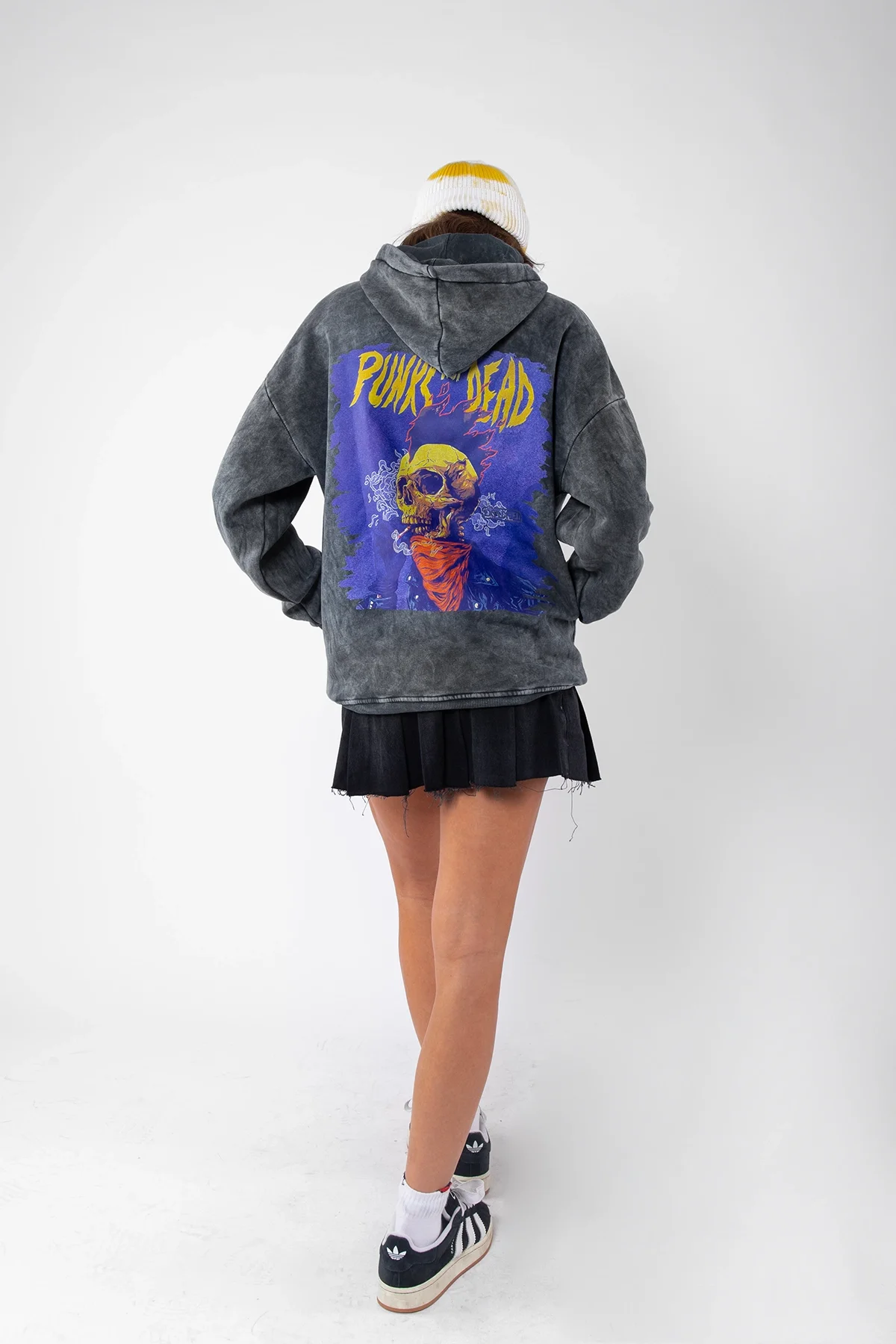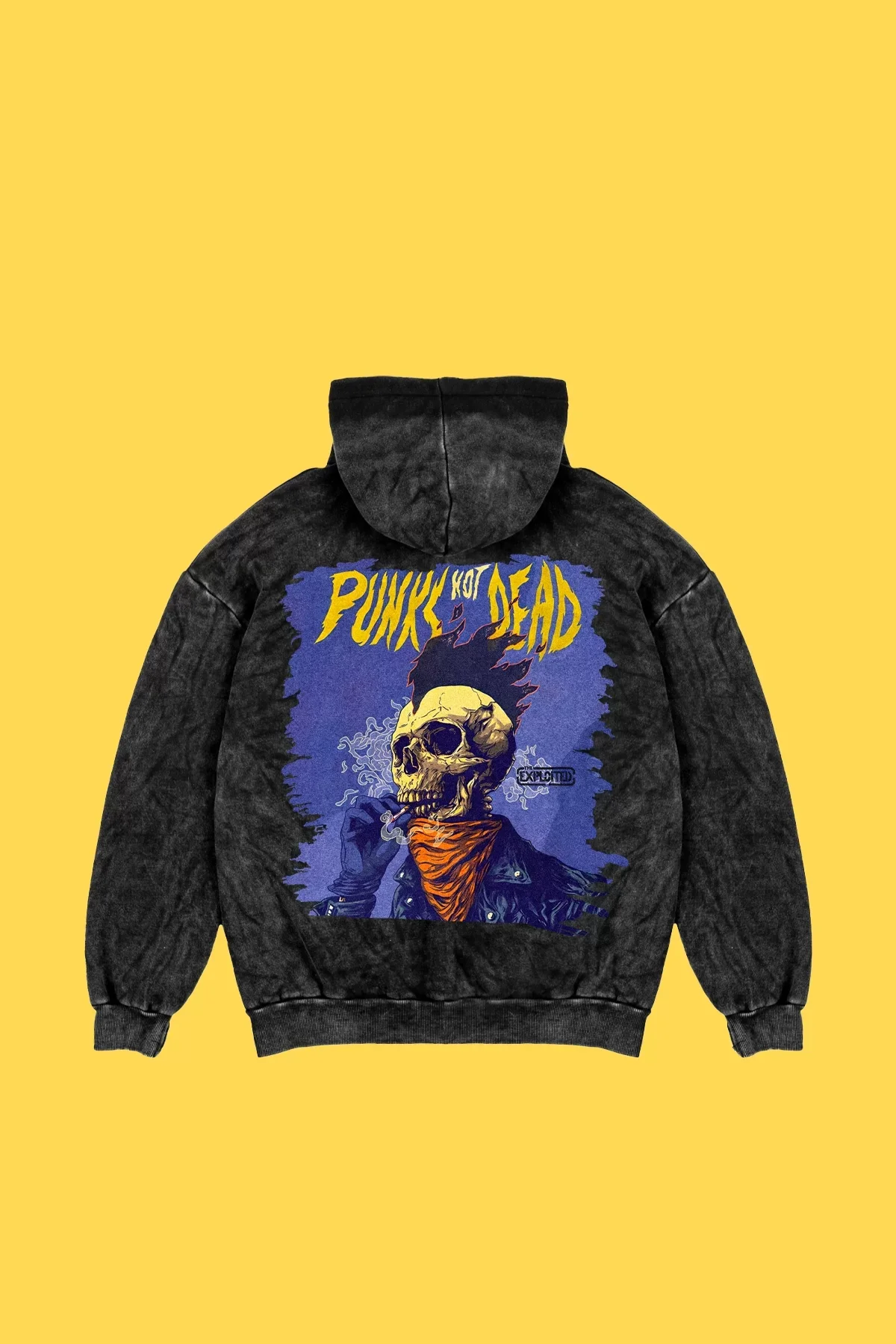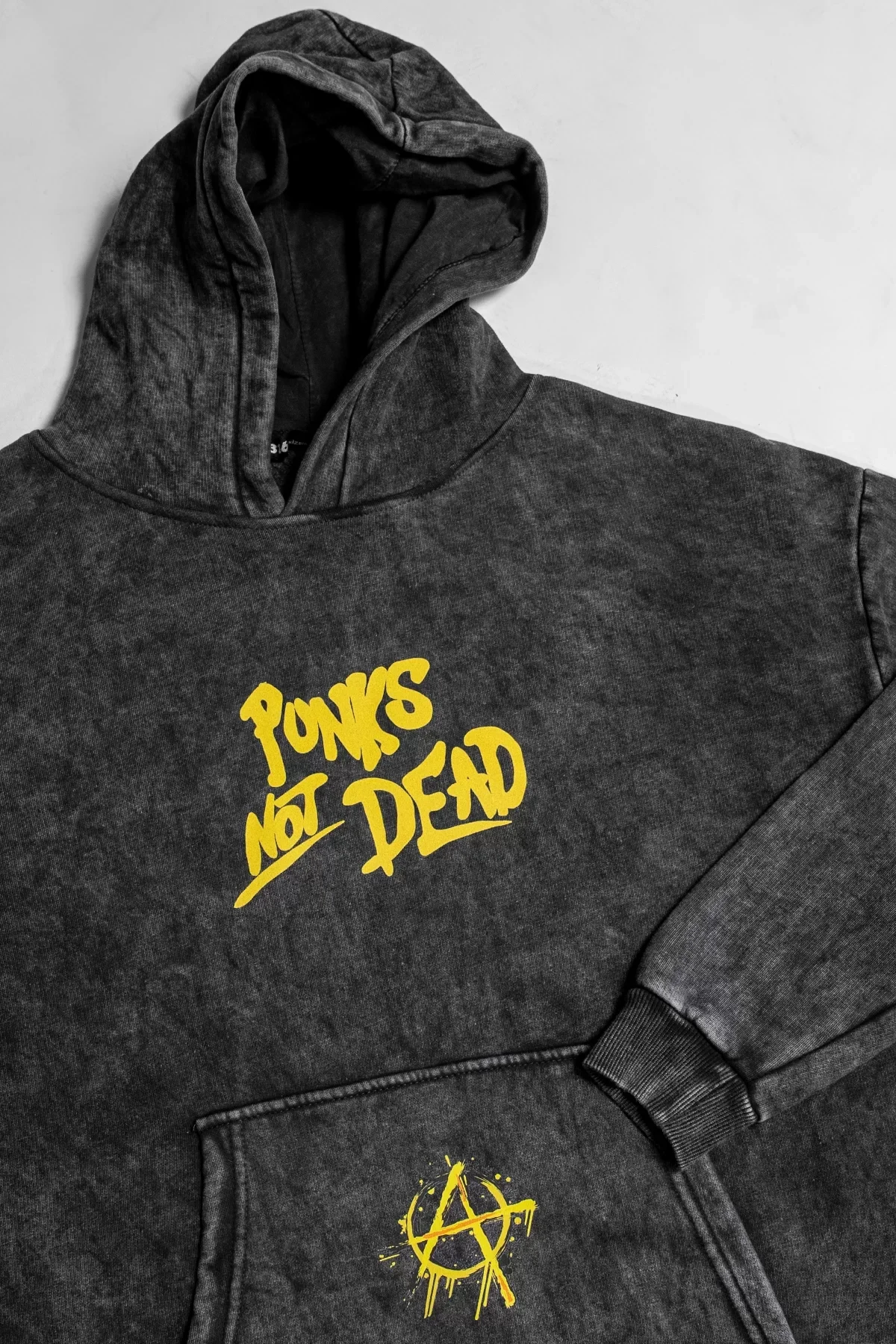 YIKAMALI PUNKS NOT DEAD BASKILI OVERSİZE UNİSEX SİYAH HOODİE