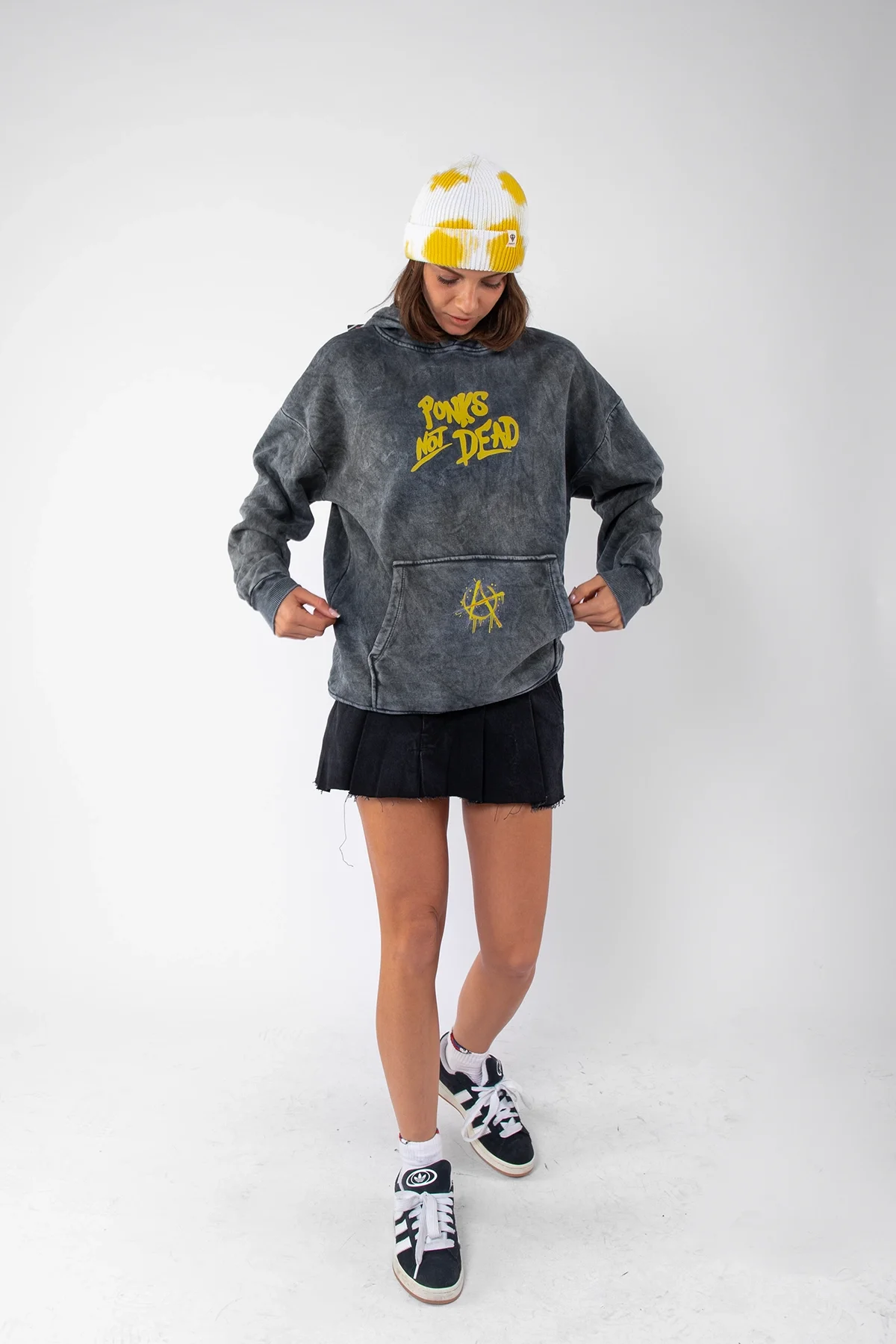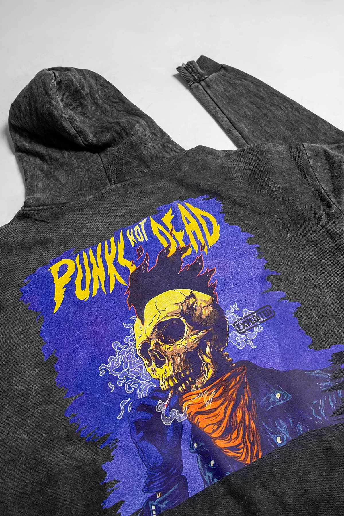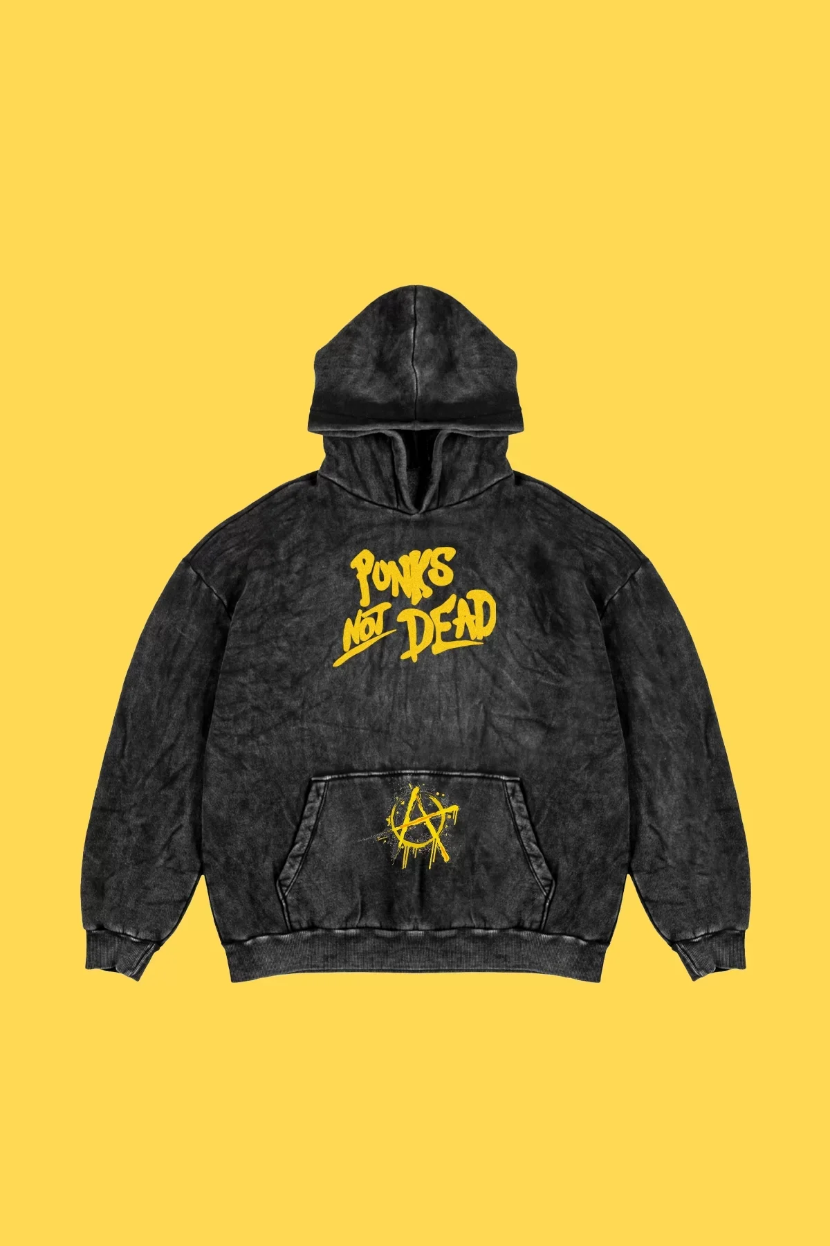 YIKAMALI PUNKS NOT DEAD BASKILI OVERSİZE UNİSEX SİYAH HOODİE