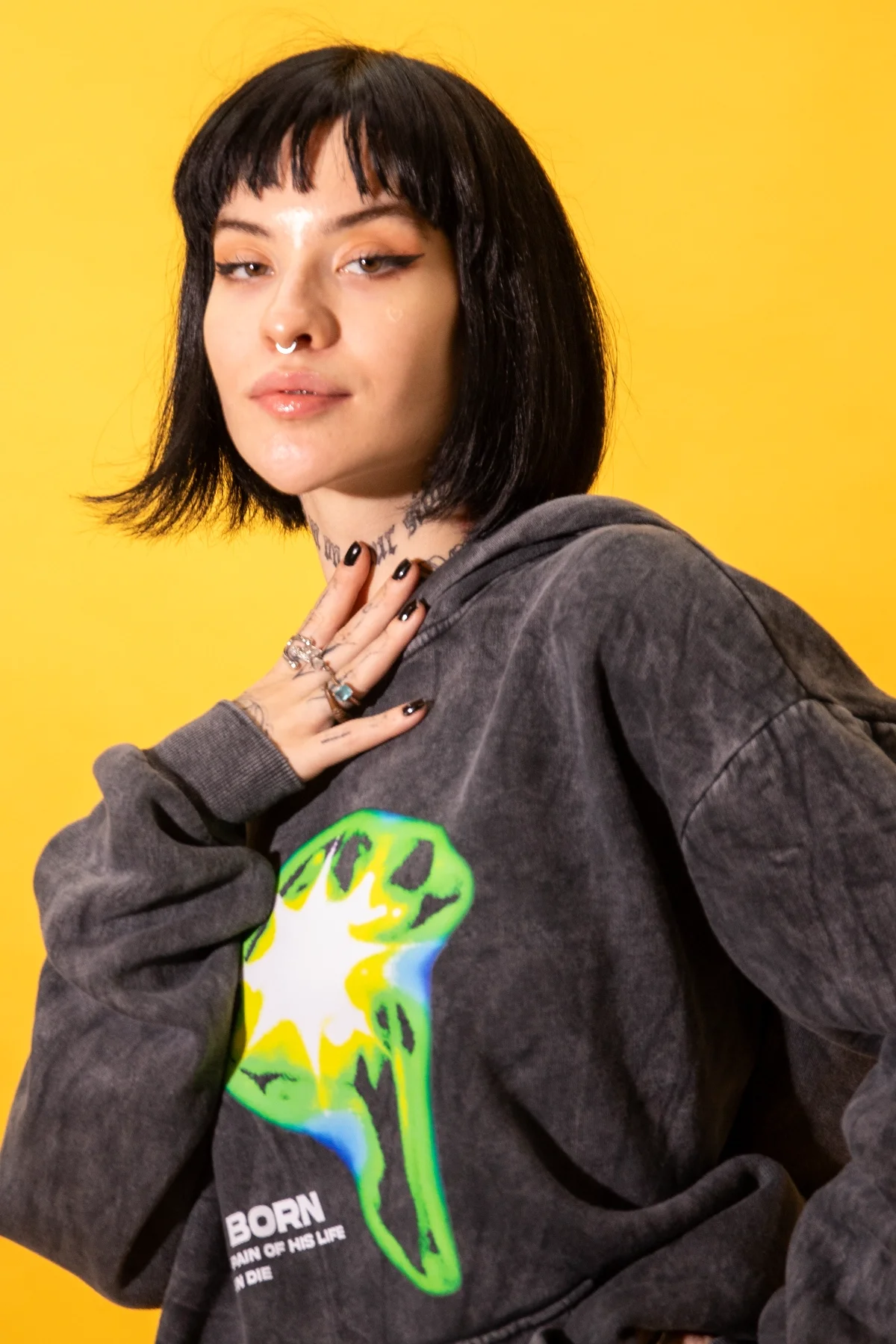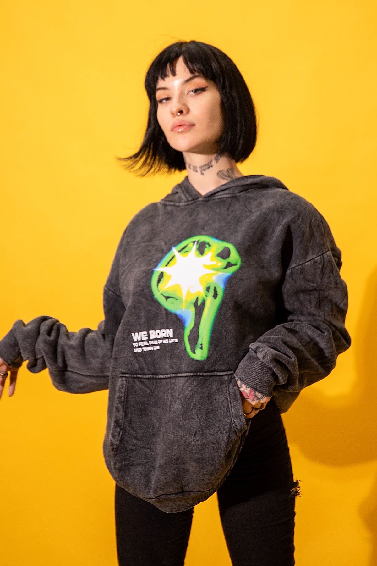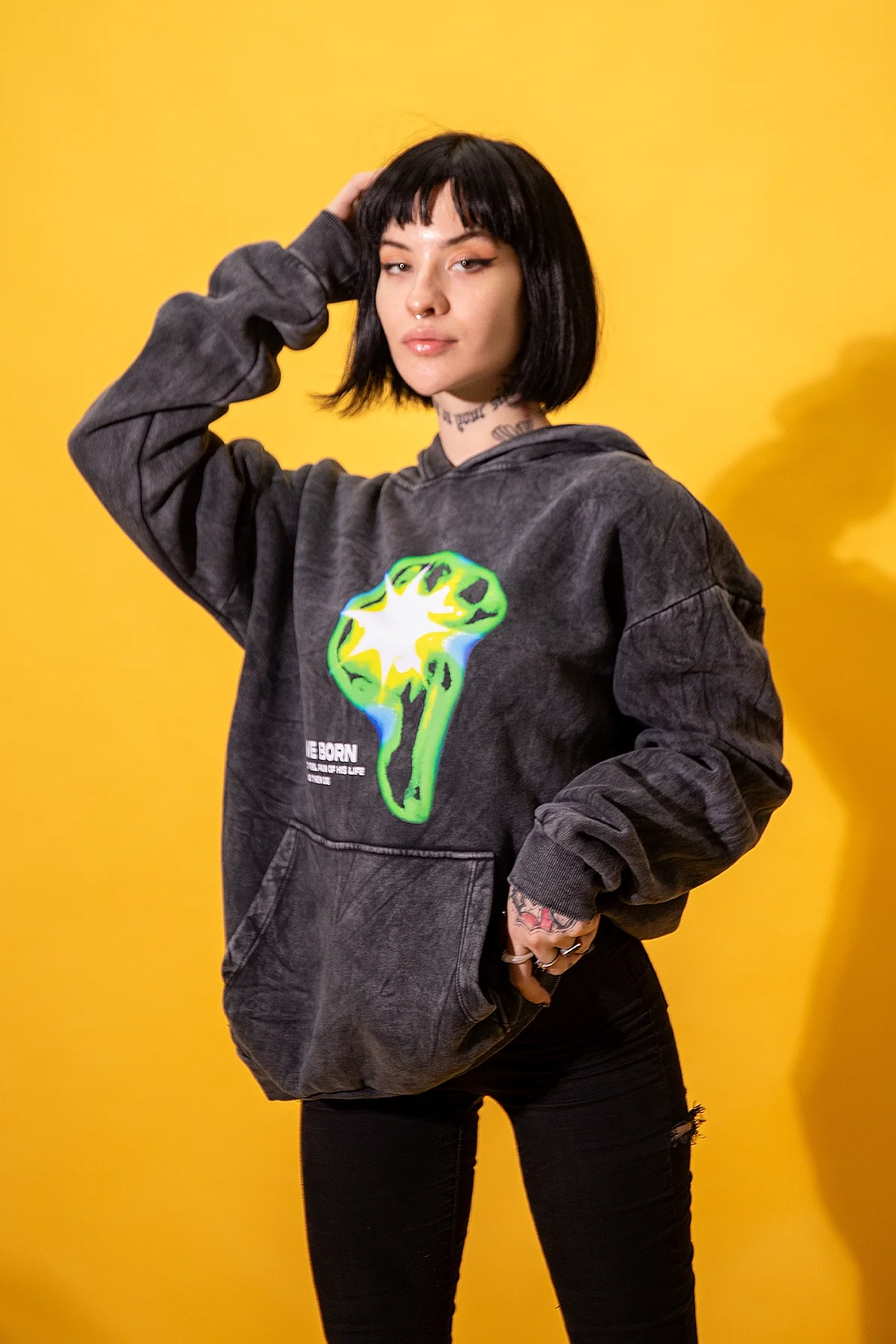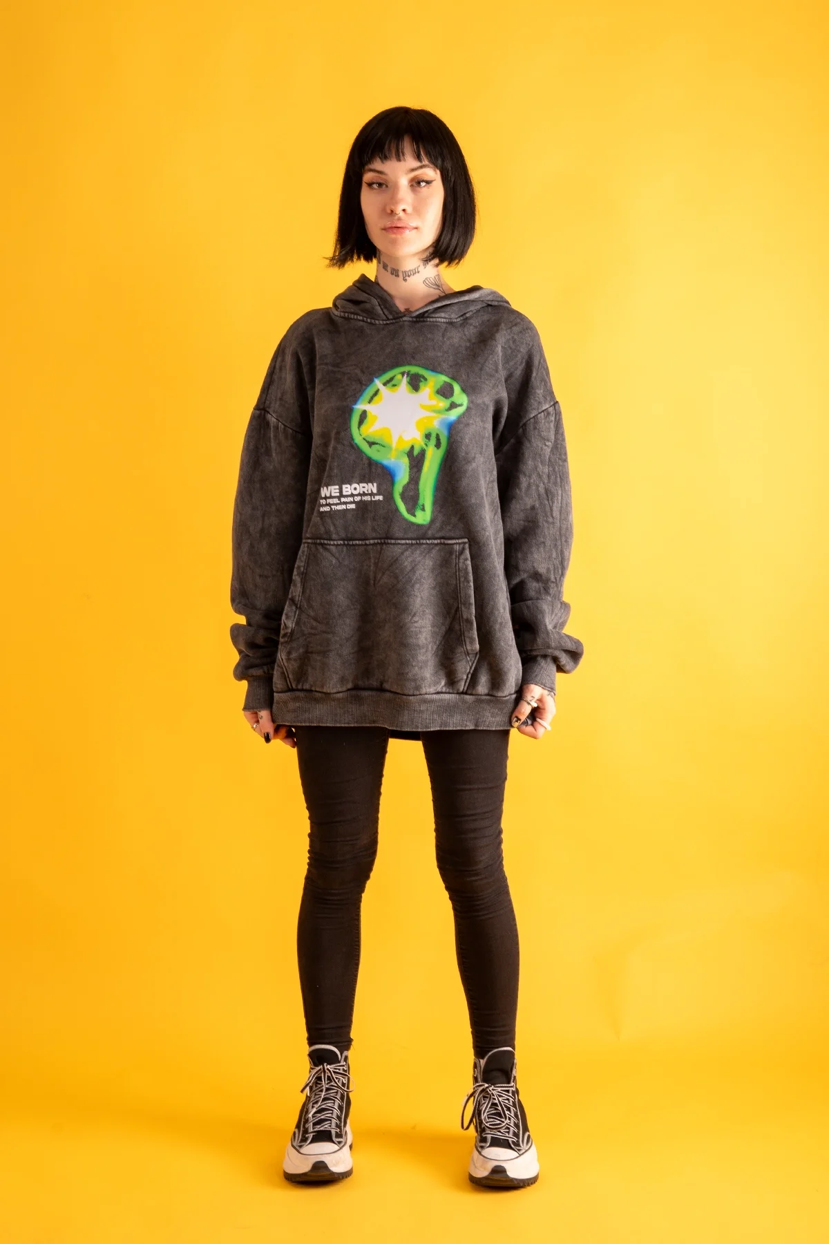 YIKAMALI WE BORN BASKILI OVERSİZE UNİSEX FÜME HOODİE