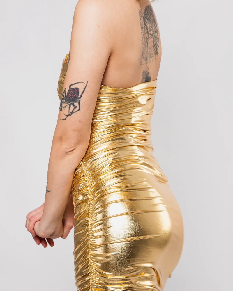 Tek Kol Büzgülü Kırmızı Mini Elbise