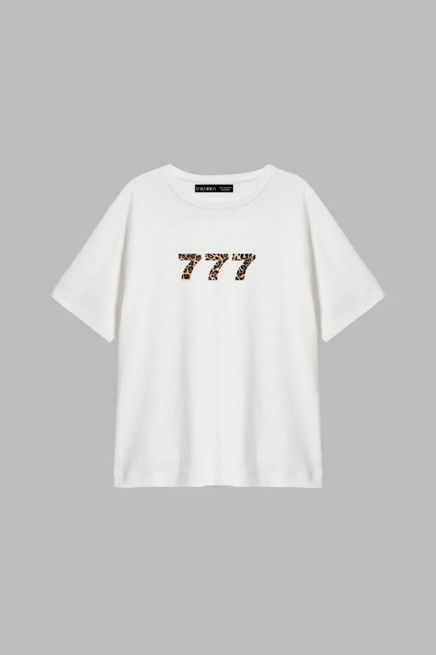 777 BASKILI RELAXED FİT BEYAZ KADIN TSHİRT