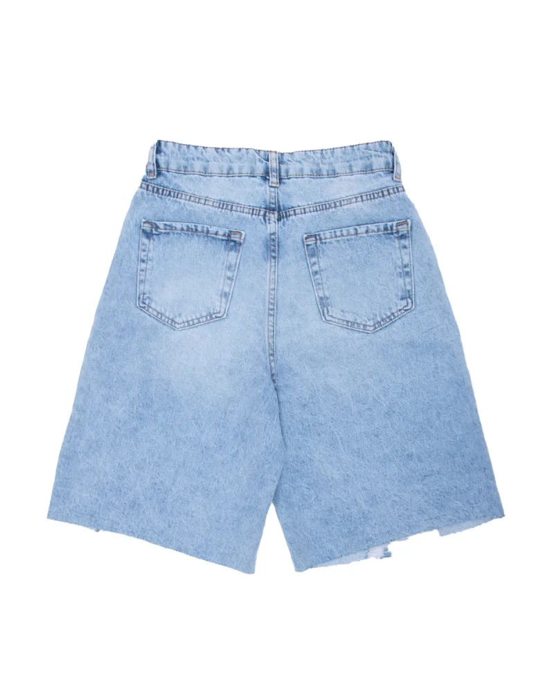 Kare Yırtmaç Detaylı Denim Kot Şort