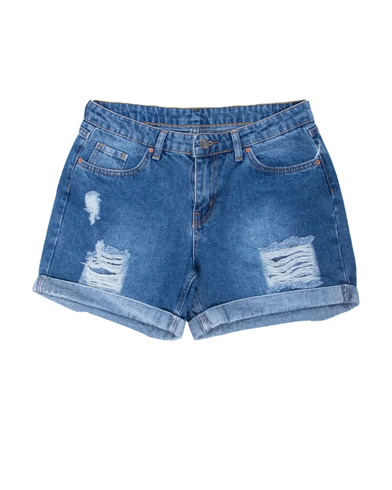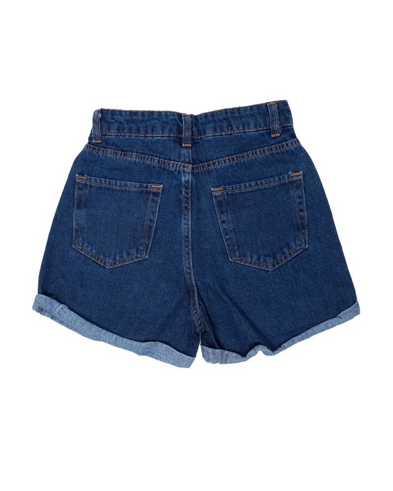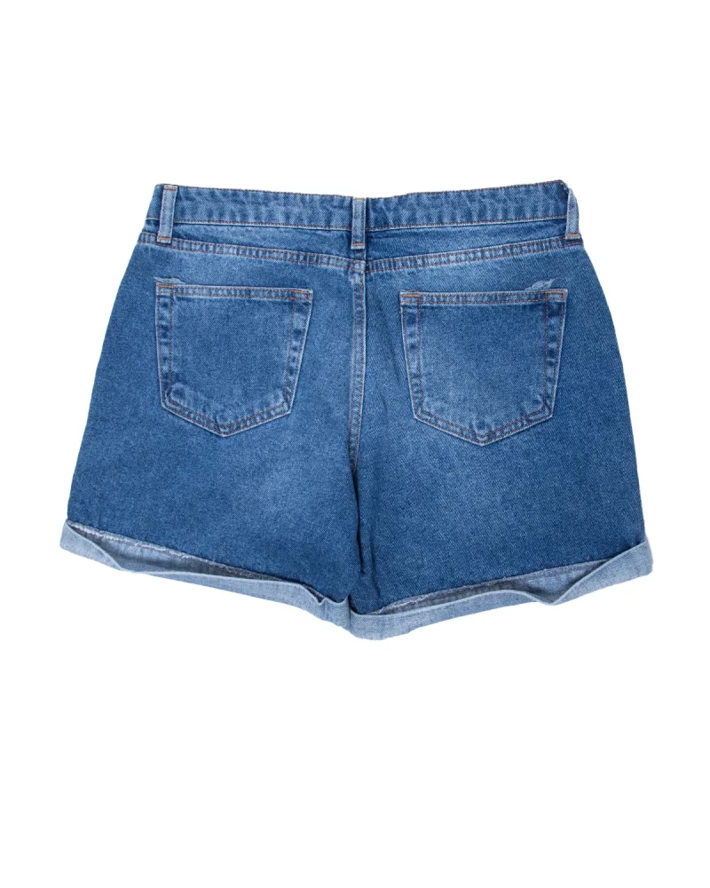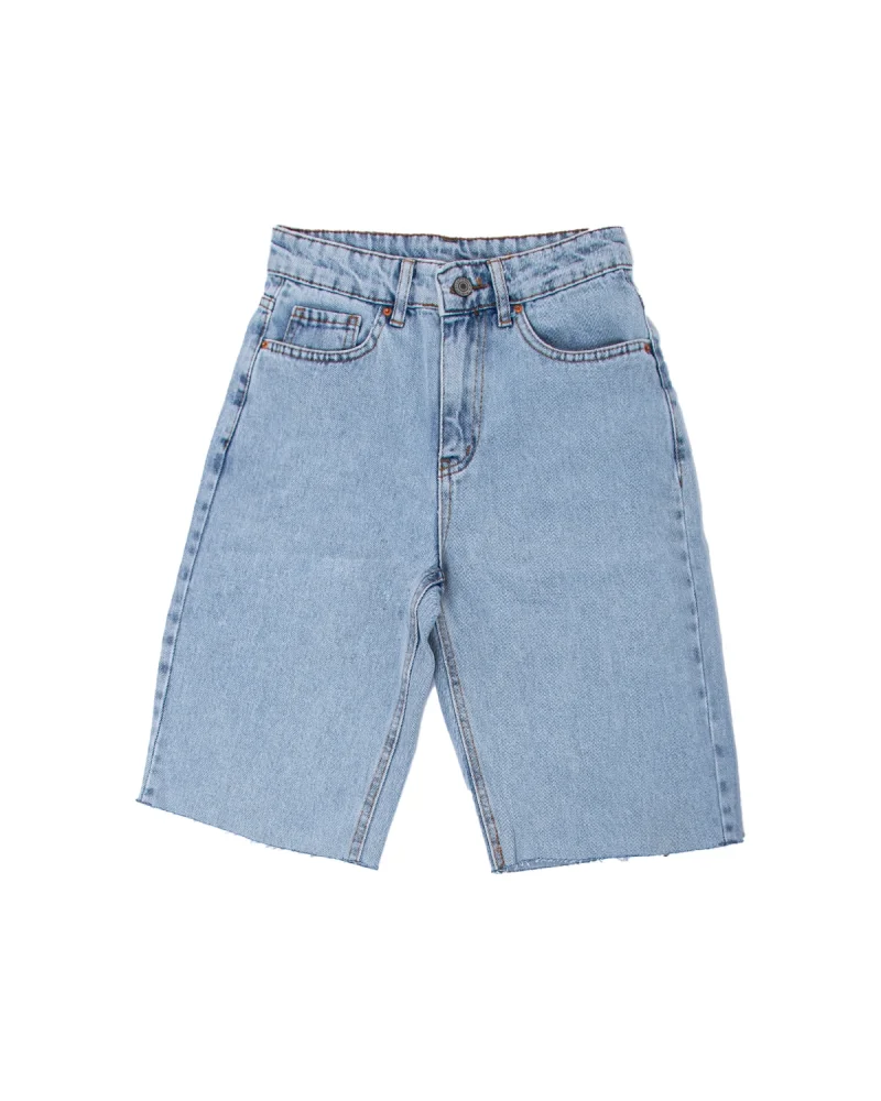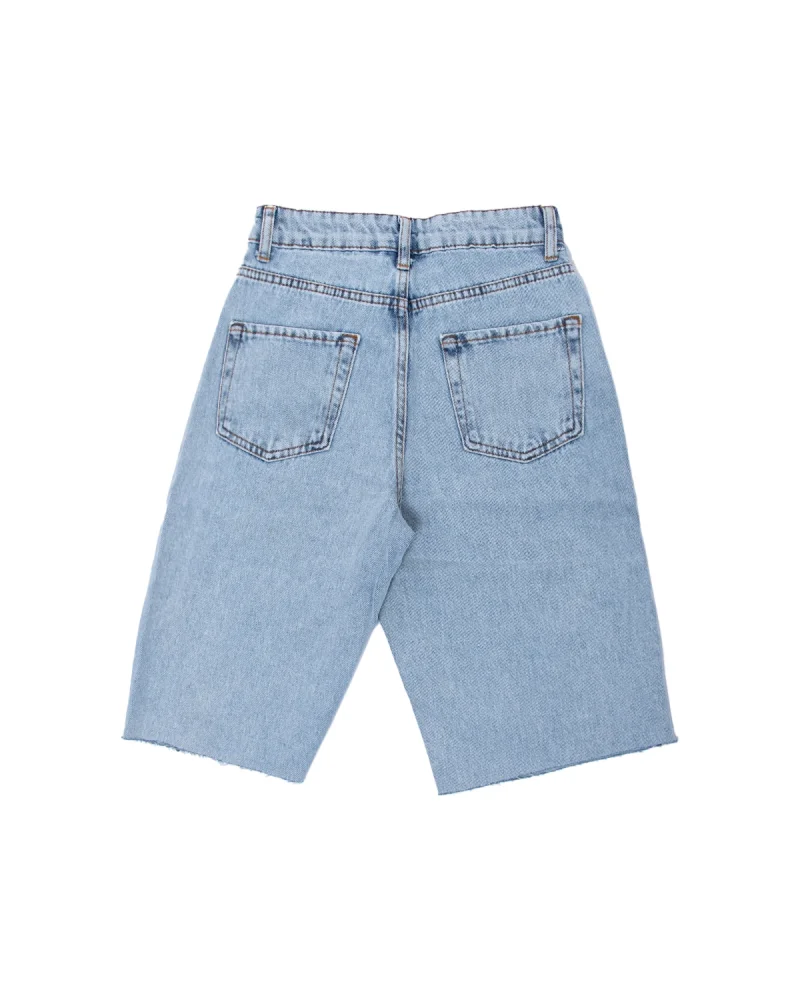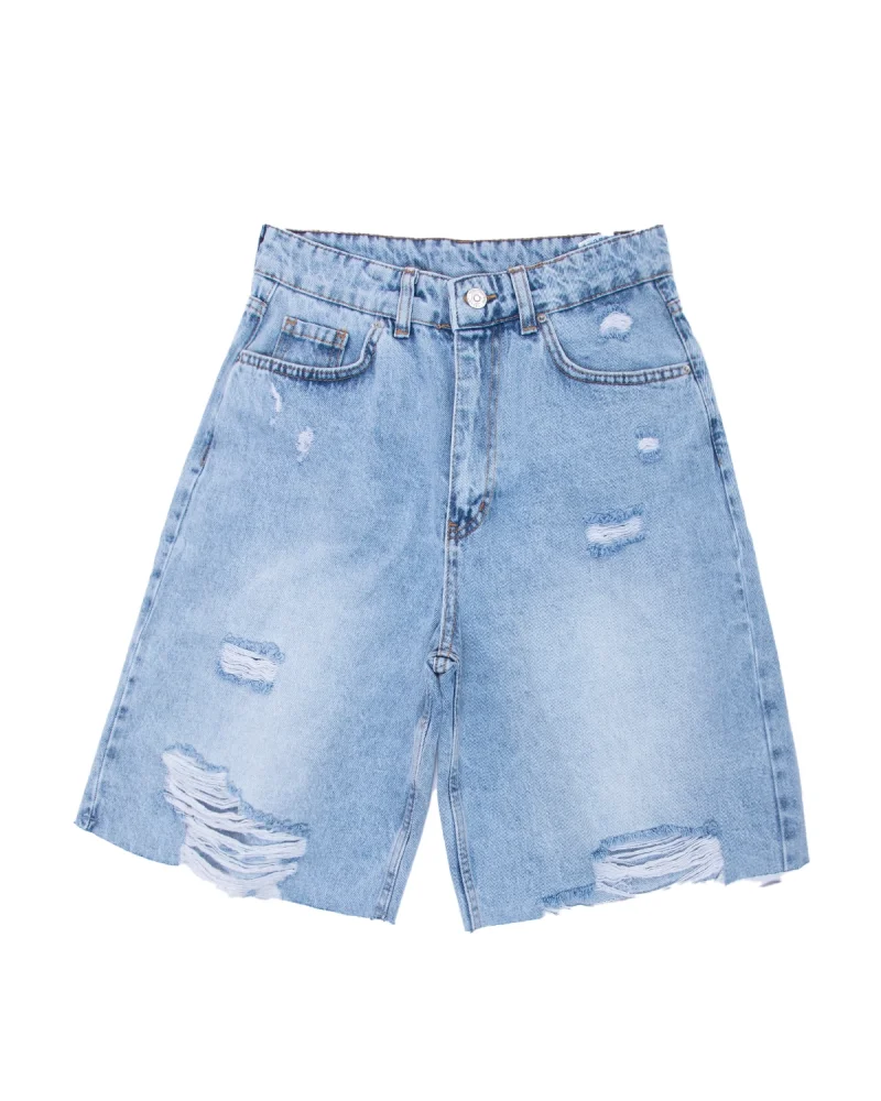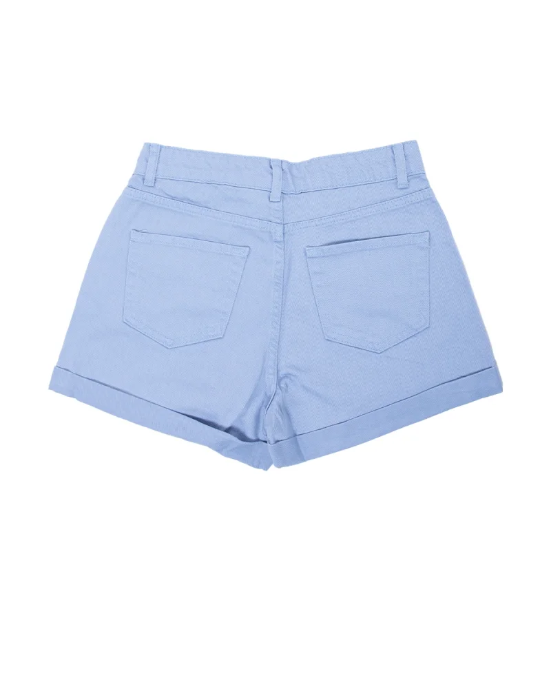 Batik Yıkamalı Yüksek Bel Buz Mavisi Şort