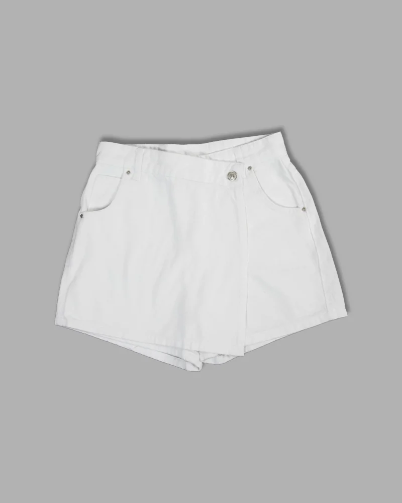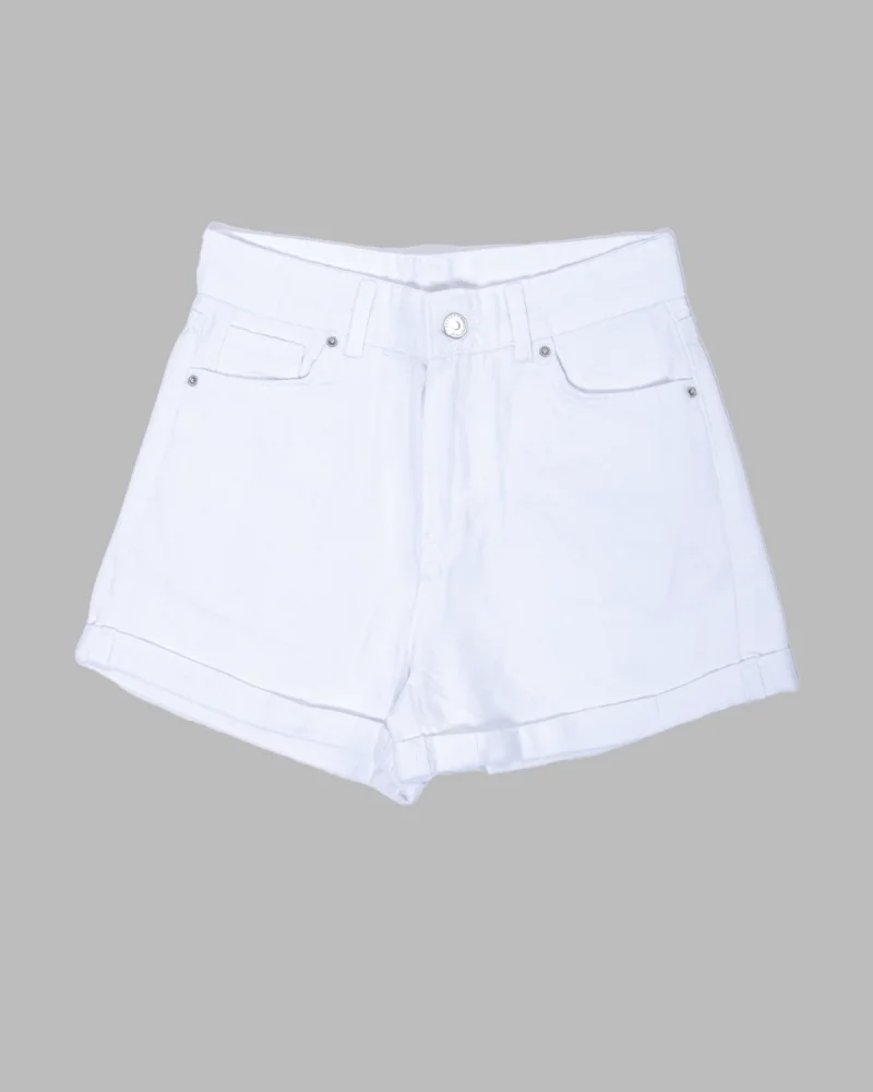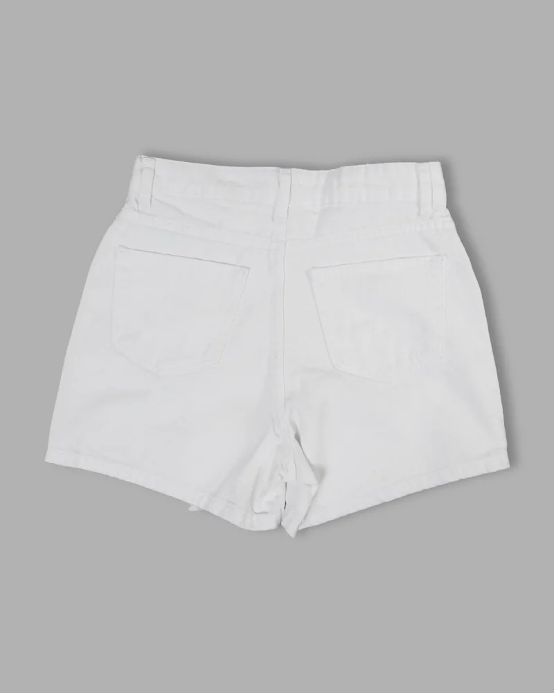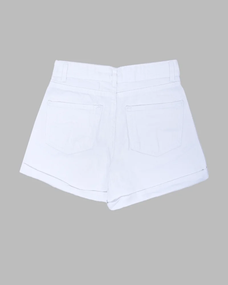Cep detaylı Pat Kapatmalı Beyaz Kot Şort