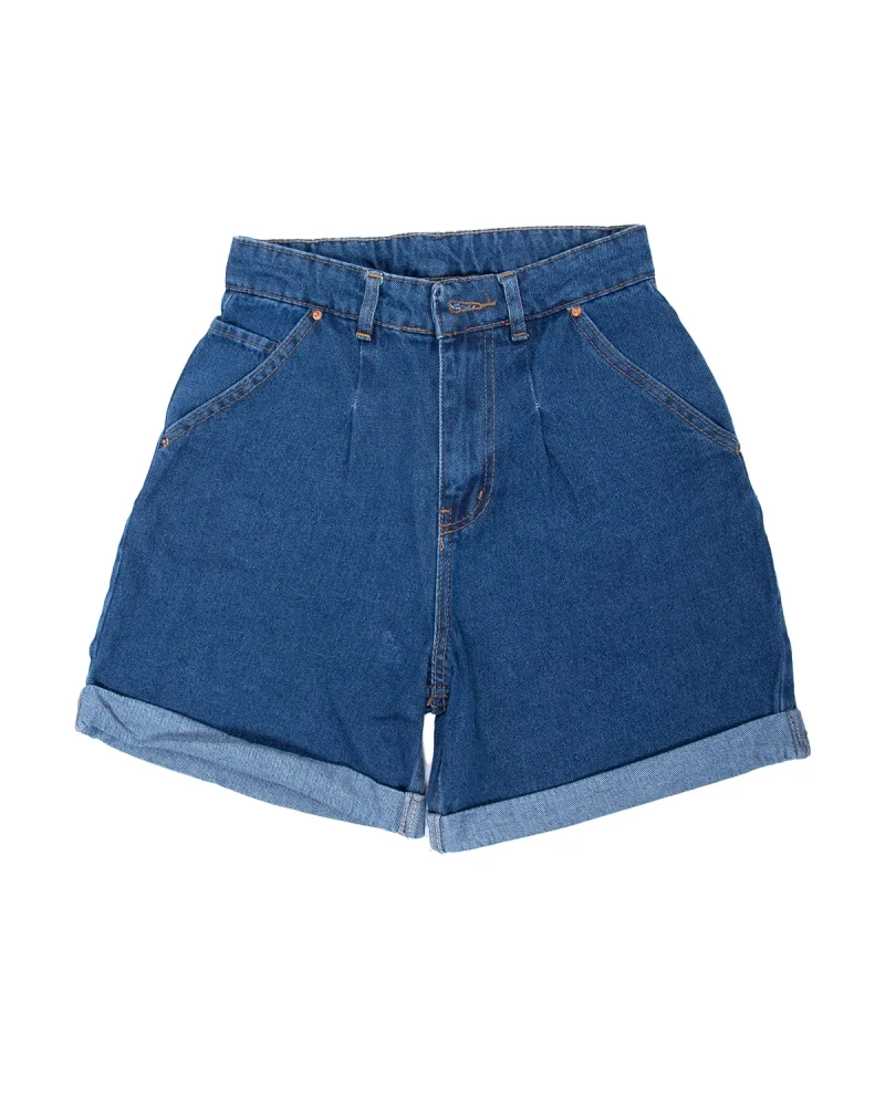 Yüksek Bel Kumaş Bebe Mavisi Şort