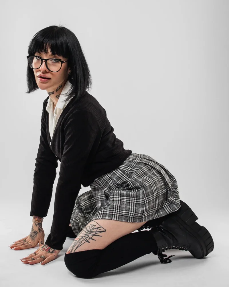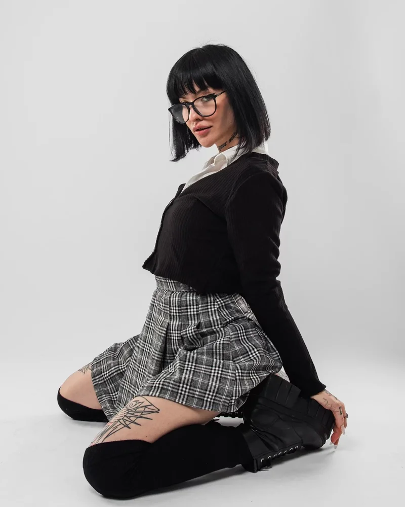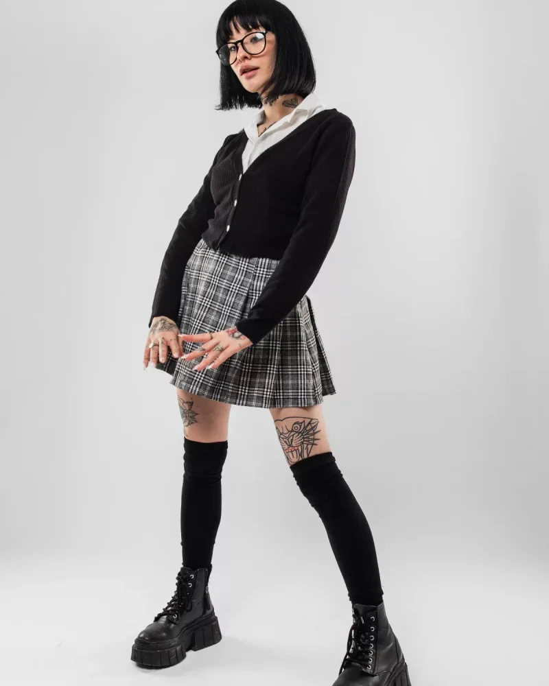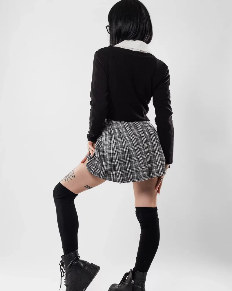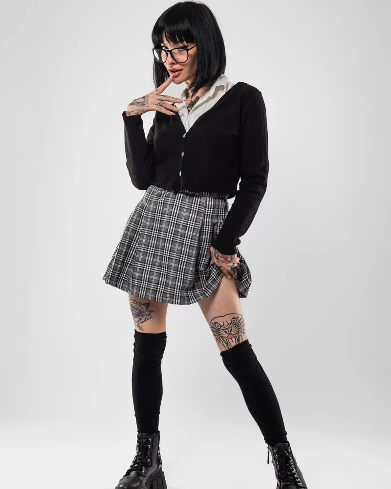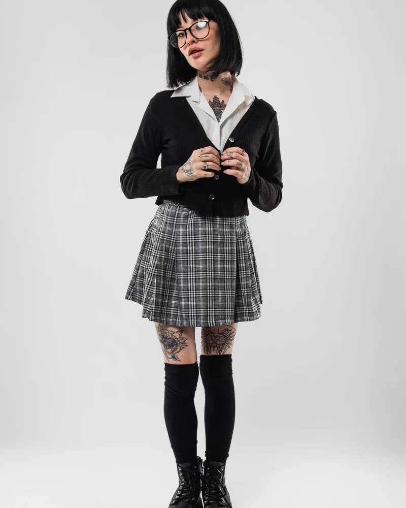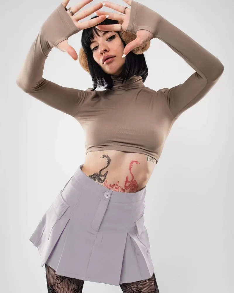 Kargo Cep Detaylı Pileli Gri Mini Etek