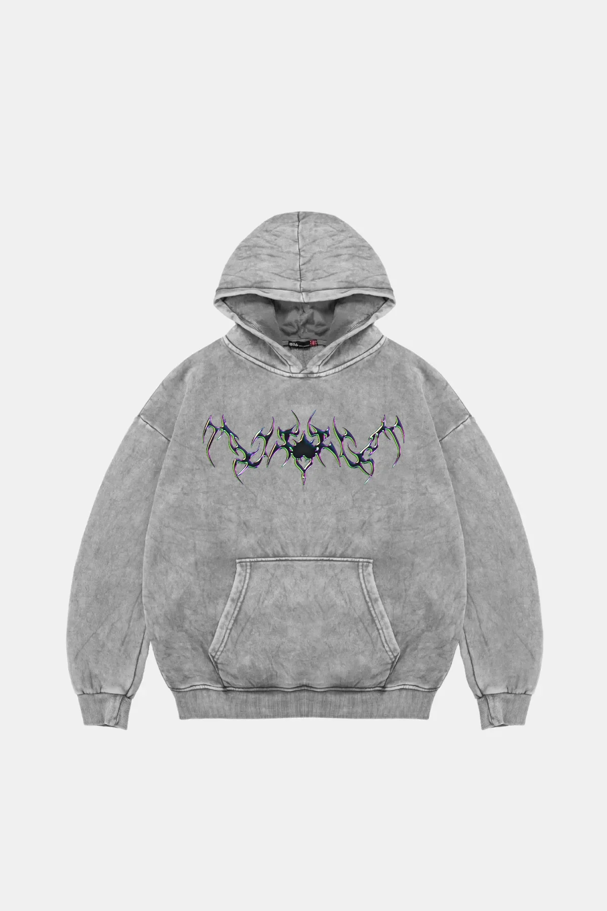 FORGET HOLOGRAM BASKILI OVERSİZE UNİSEX PREMİUM YIKAMALI BEYAZ HOODİE
